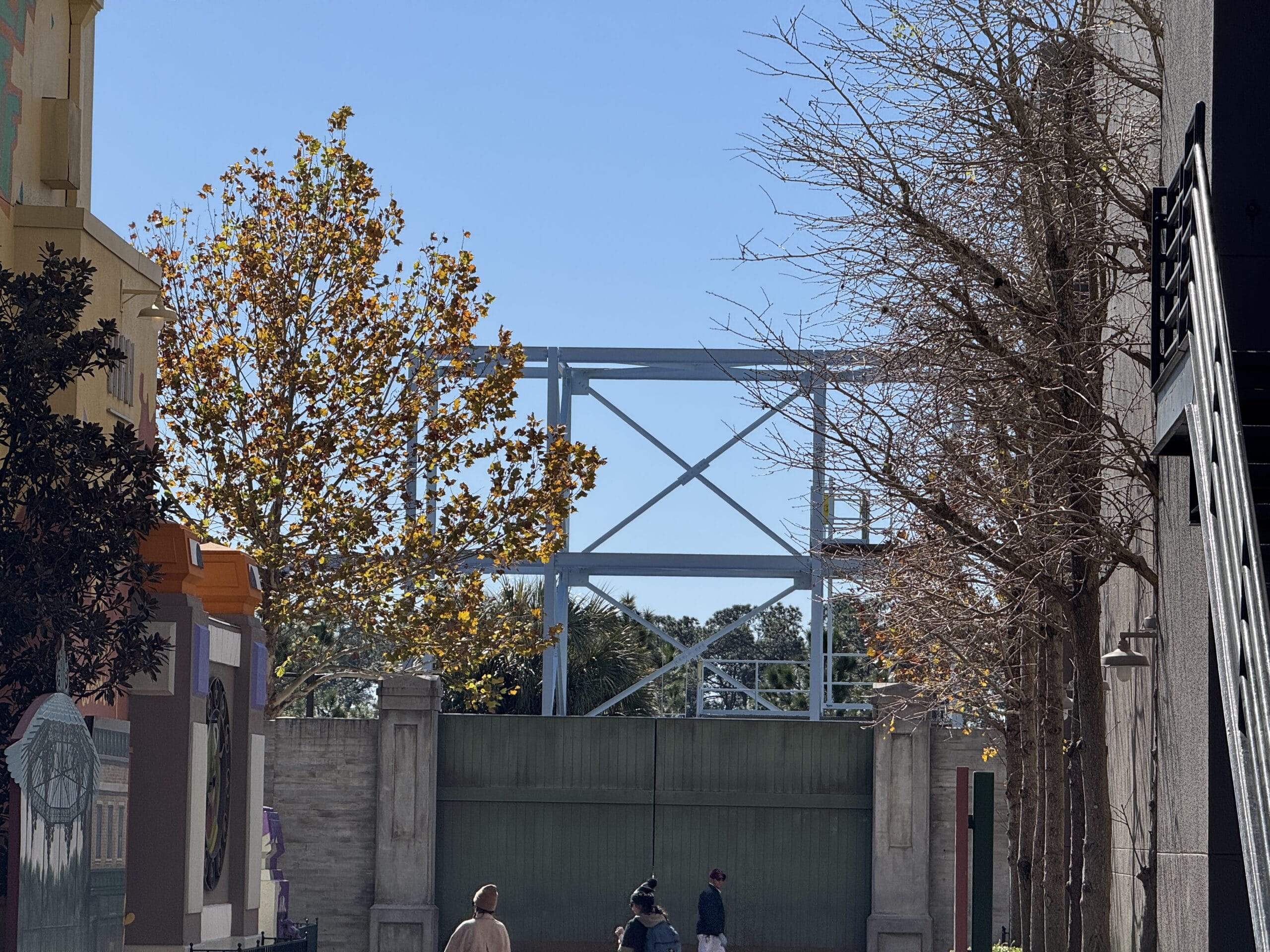 Recently, this structure behind MuppetVision was repainted to gray/light blue. Disney hasn’t taken this down, even though most of the structure here was taken down when Star Wars: Galaxy’s Edge opened. I still remember when we could walk through this gate and go to see Lightning McQueen and Tow Mater.