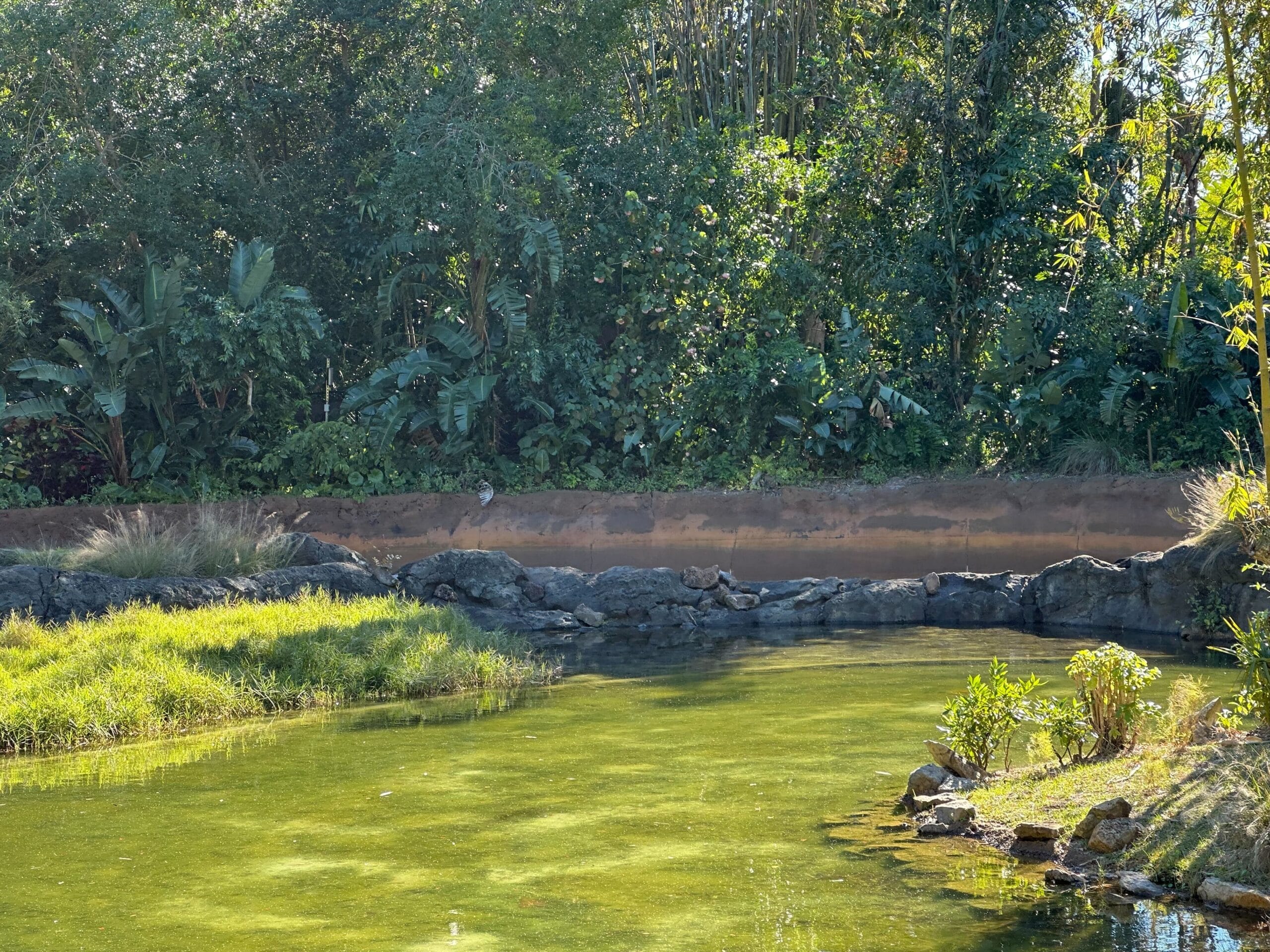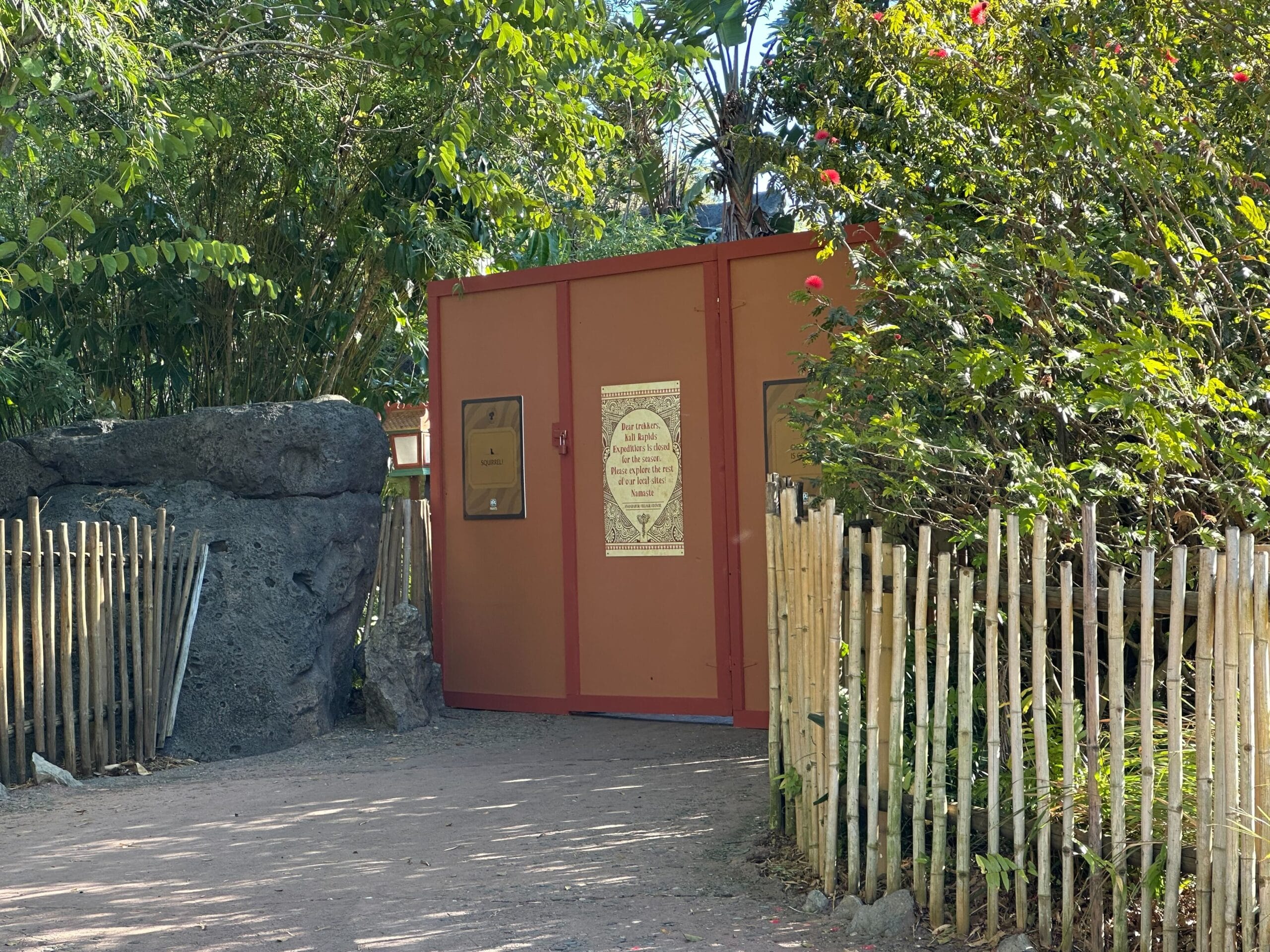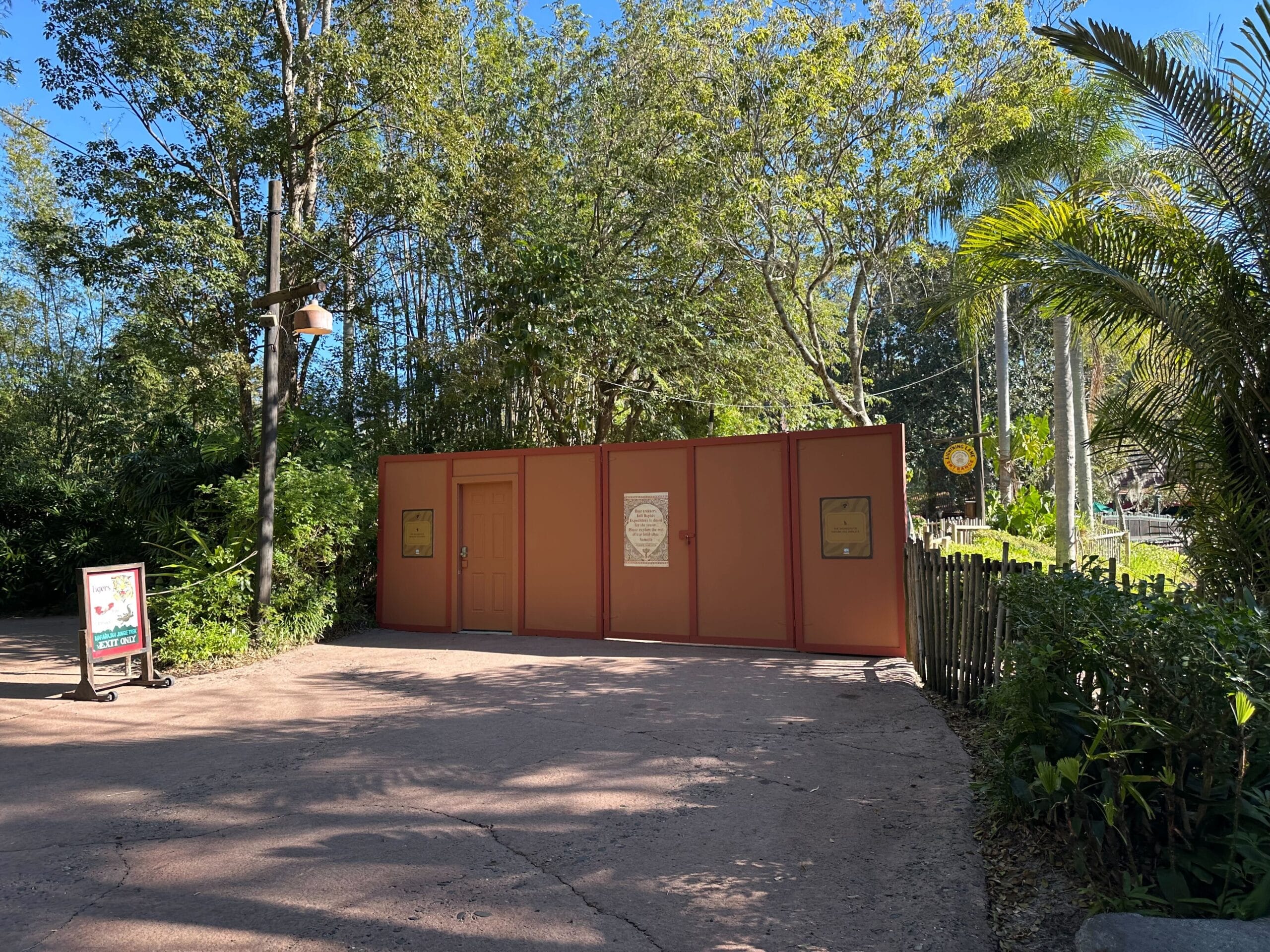 The exit of the attraction has also been walled up. A sign to the left informs guests that the path ahead is the “Exit Only” for the Maharajah Jungle Trek.