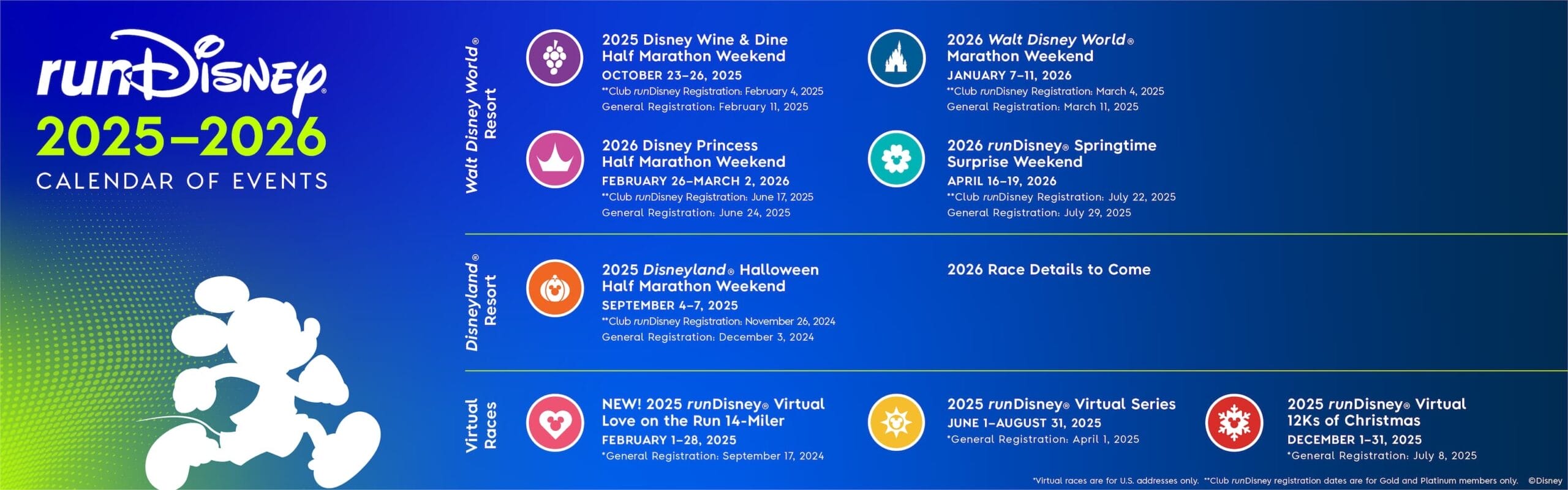 The 2025 – 2026 calendar of events has been released by runDisney, offering a first look at some upcoming race dates.