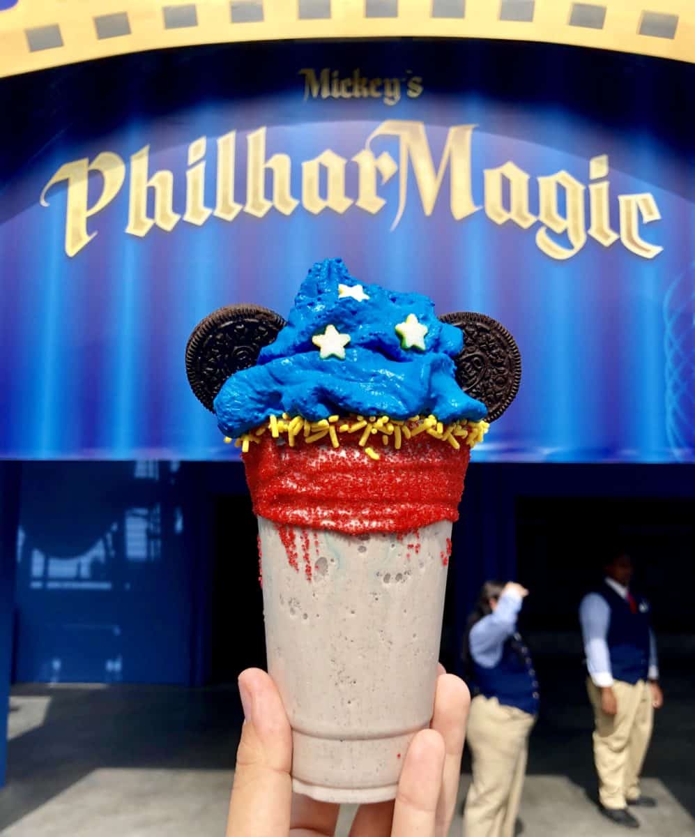 The Sorcerer’s Apprentice Mickey is a renamed version of the Sorcerer Mickey Shake that appeared in 2019. We are glad to see it back, as this cookies-and-cream milkshake base is one of our absolute favorites. The ice cream is not too sweet, and it has just the right blend of chunky cookie bits without becoming chewy.