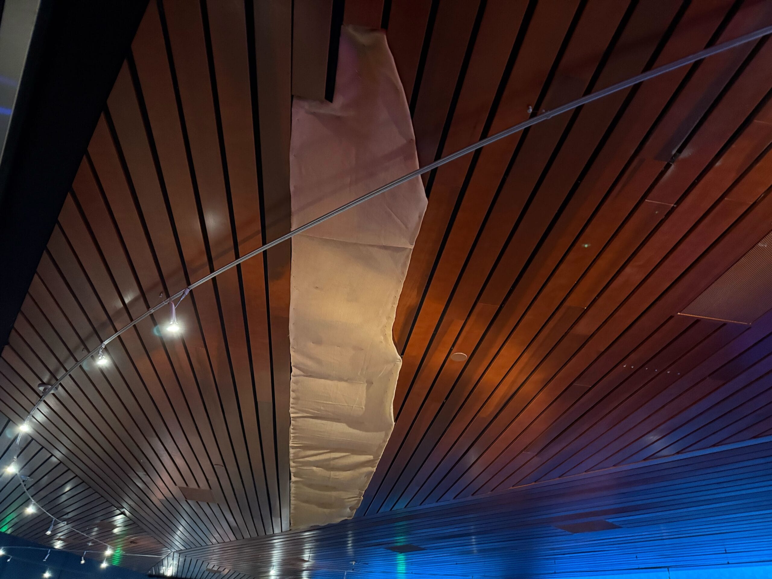Earlier this week, a video showed the broken ceiling with pieces dangling and sitting on the ground, while Cast Members looked shocked. Although the original poster said the collapsing ceiling nearly hit guests and Cast Members, Disney representatives stated the attraction and queue were closed for the evening when the incident occurred. They also stated the issue had been fixed — evidently with the scrim. A more permanent solution is likely in the works.
