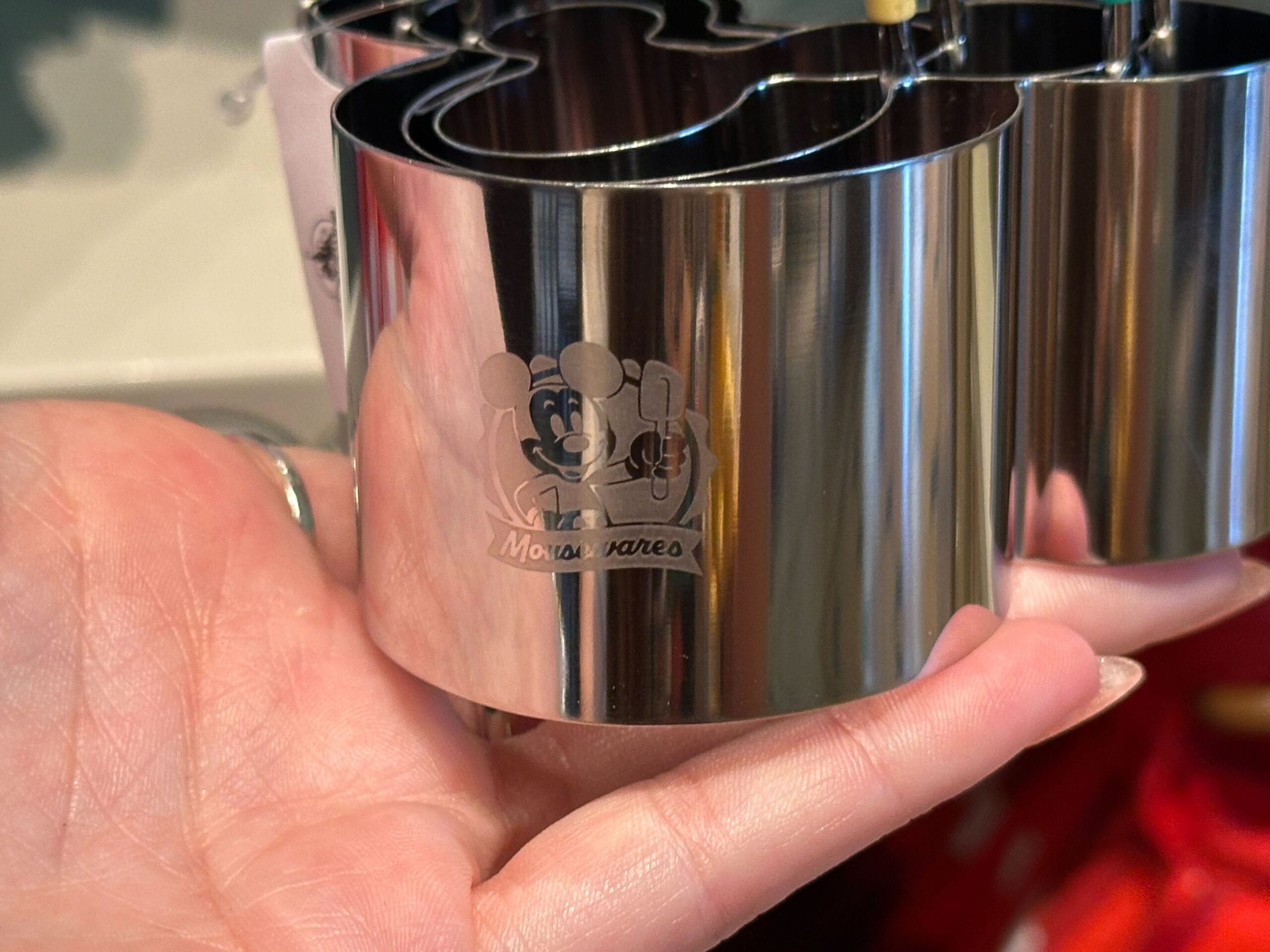 Etched into the largest cutter is Mickey Mouse holding a spatula with “Mousewares” written below.