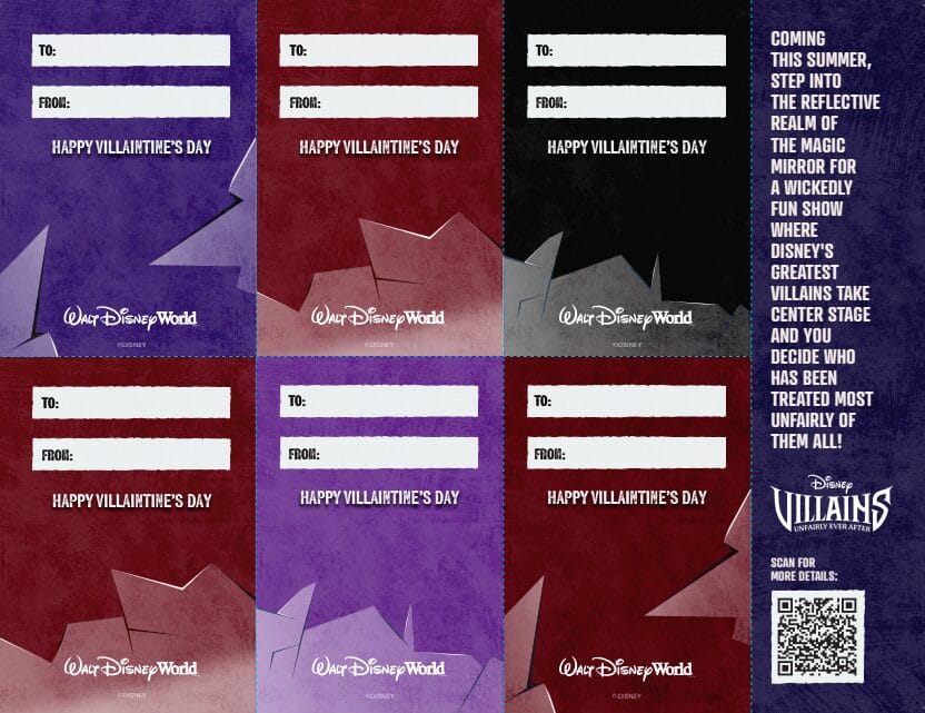 The “Villaintine’s Day” Cards above can be downloaded on the Disney Parks Blog website.