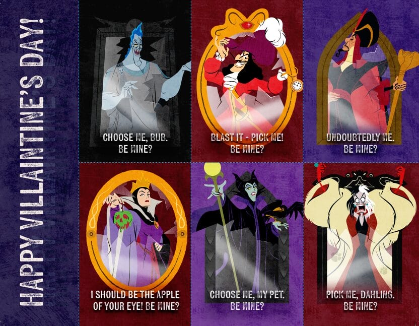 With Valentine’s Day arriving this week, Disney Parks Blog has shared a handful of “Villaintines” to share with your loved ones, all featuring iconic Disney Villains.