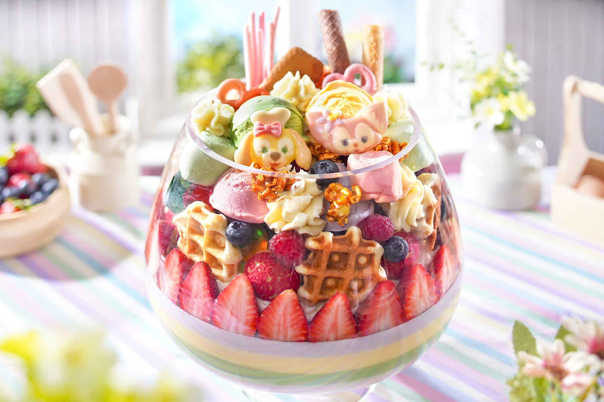 Sweet treats inspired by Duffy and Friends include the Giant Ice Cream Sundae at Main Street Corner Cafe Hosted by Coca-Cola and the Double White Peach Flavored Soft Serve at Midtown Delights. Plus, a new CookieAnn Train Popcorn Bucket will be available for purchase.
