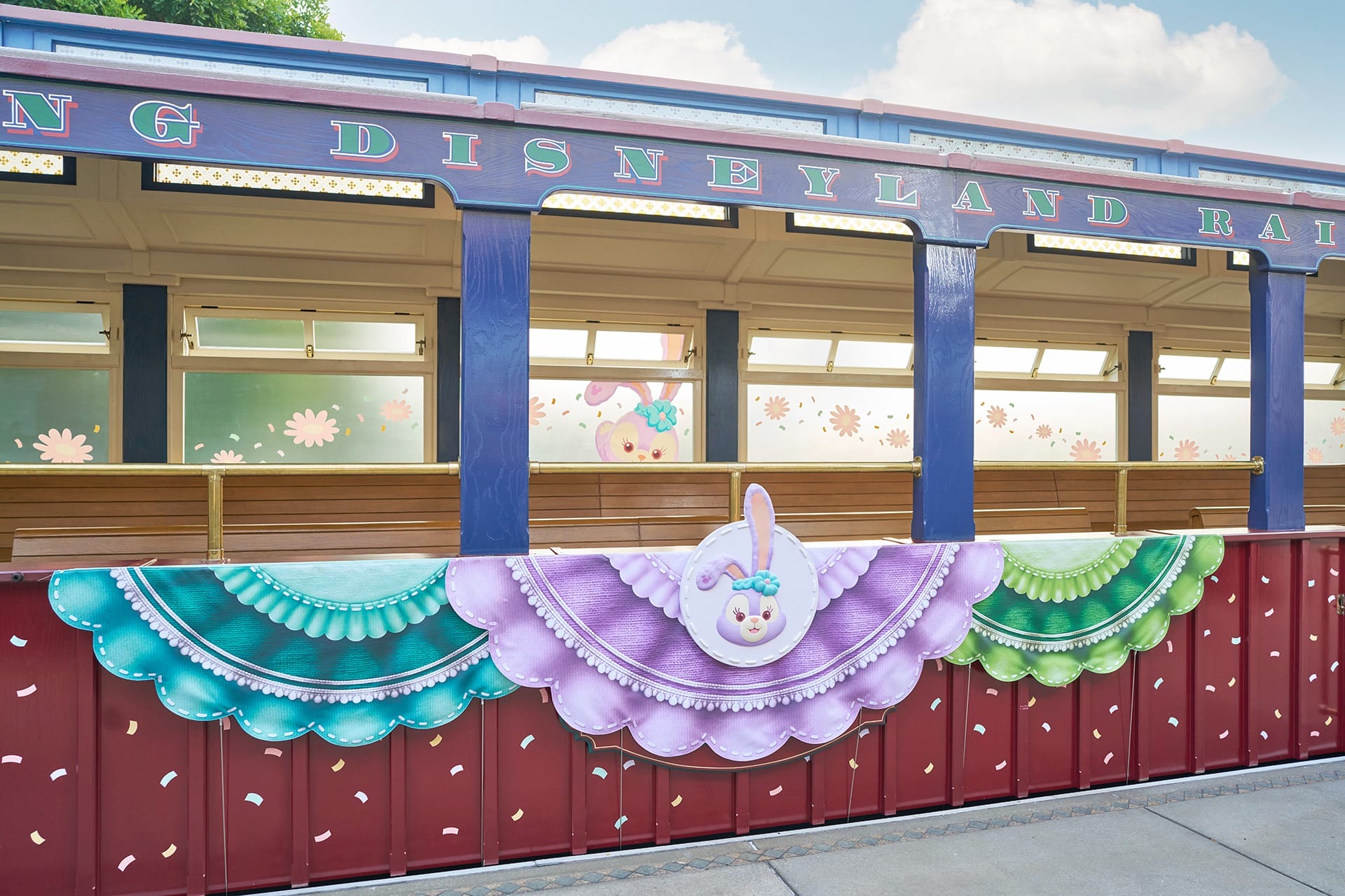 Hong Kong Disneyland Railroad will transform into a Duffy and Friends-themed train for the first time. Guests will be “whisked away on a magical journey” on a train decked out in colorful bunting and confetti. Duffy and Friends are depicted via window decals as if they’re traveling alongside guests.