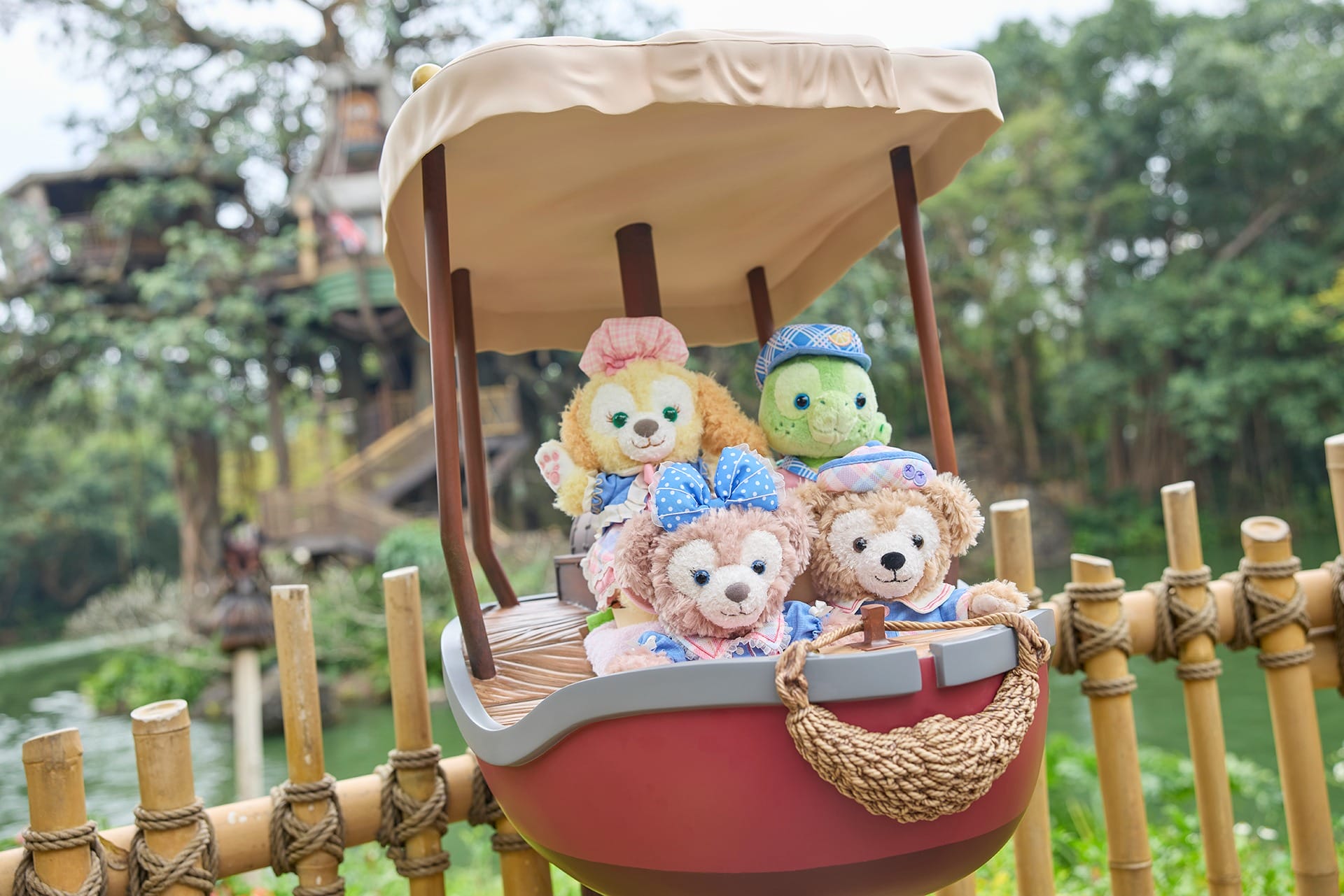 New plush photo spots are all around Hong Kong Disneyland. There are special seats set up for guests to set their plush in, making it look like Duffy and Friends are riding attractions. Locations include the Castle of Magical Dreams, Main Street Station, Adventureland, Grizzly Gulch, and Mystic Point.