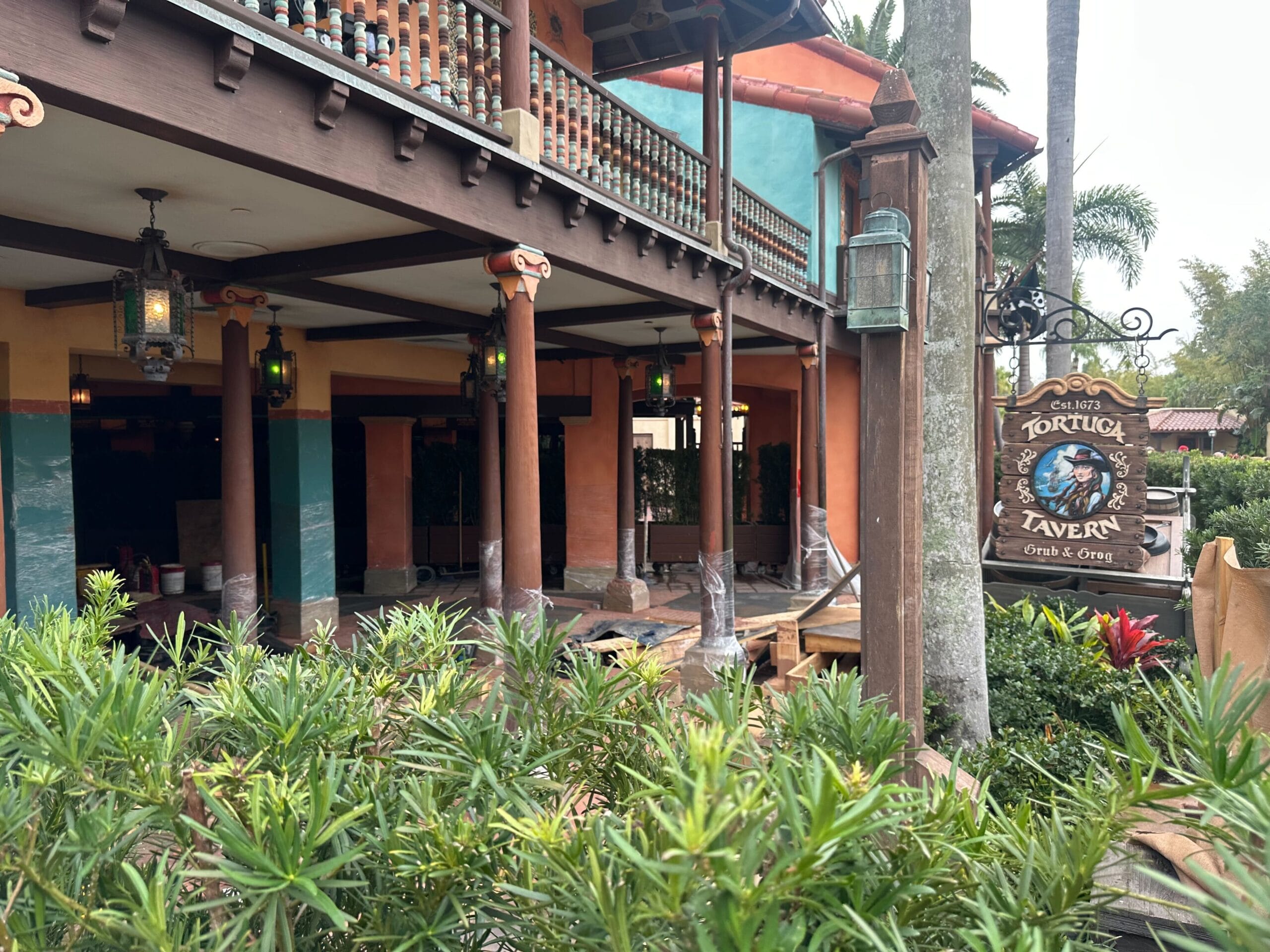 Construction at Tortuga Tavern in Magic Kingdom continues with the new flooring now partially in place.