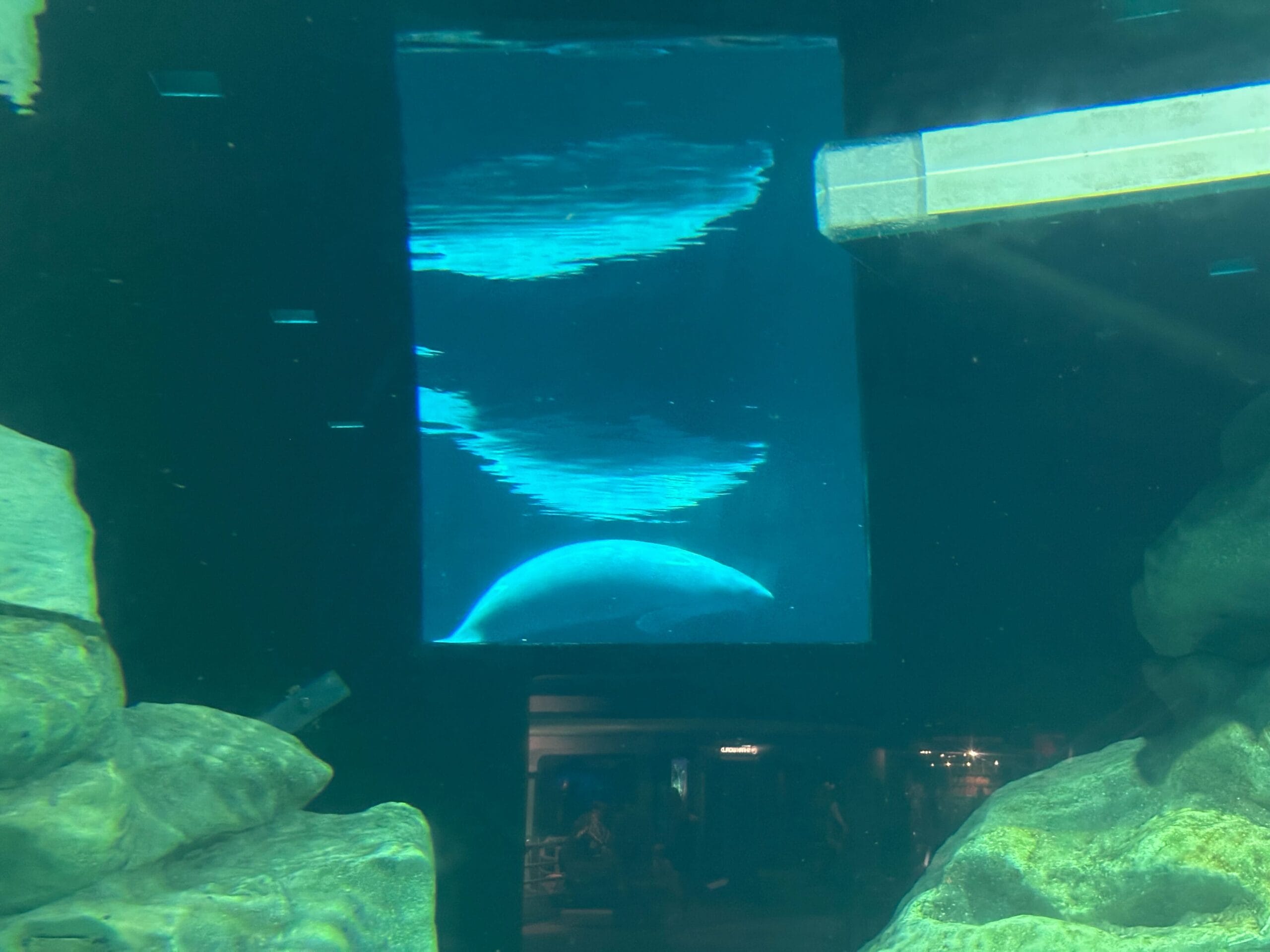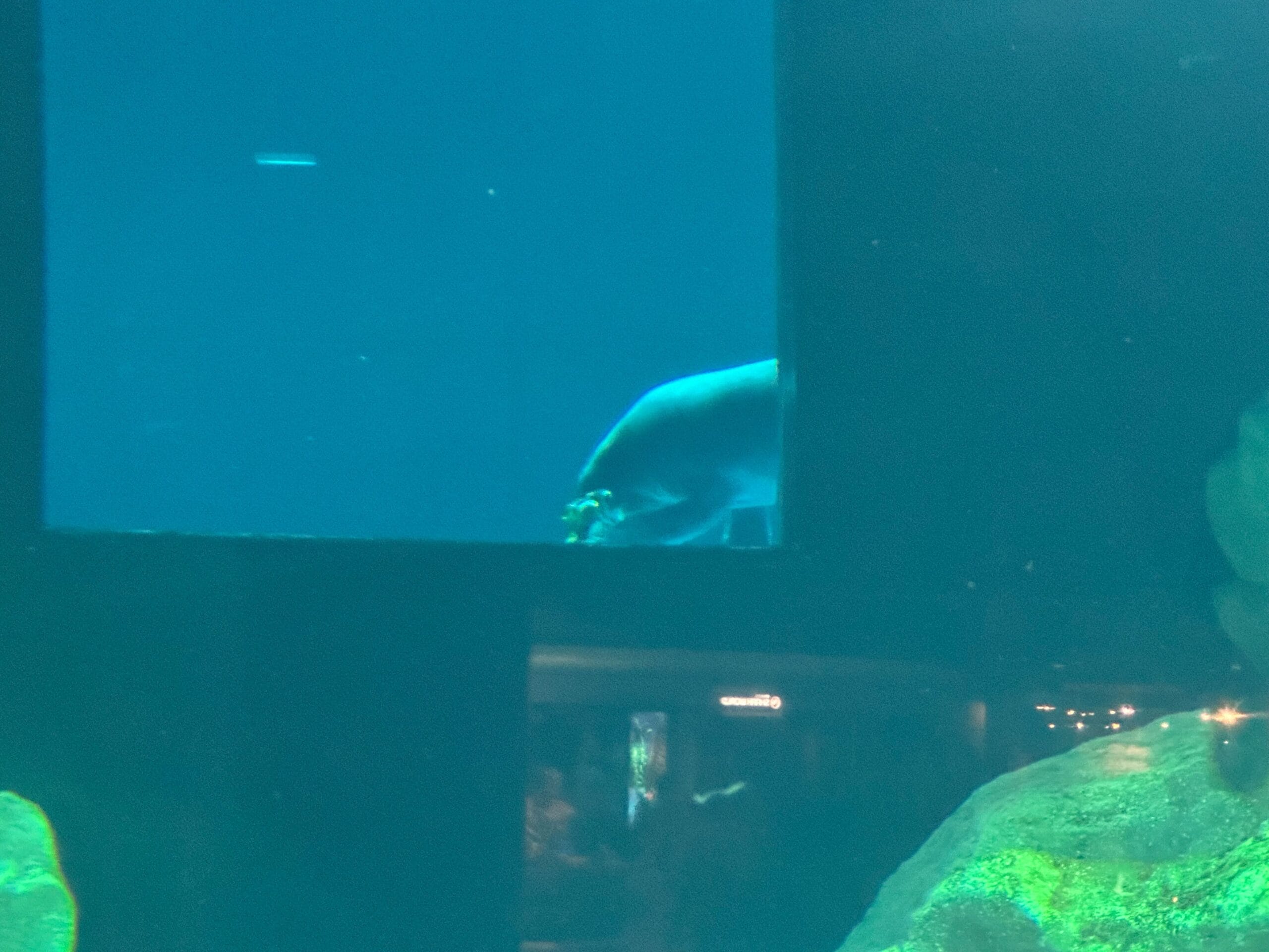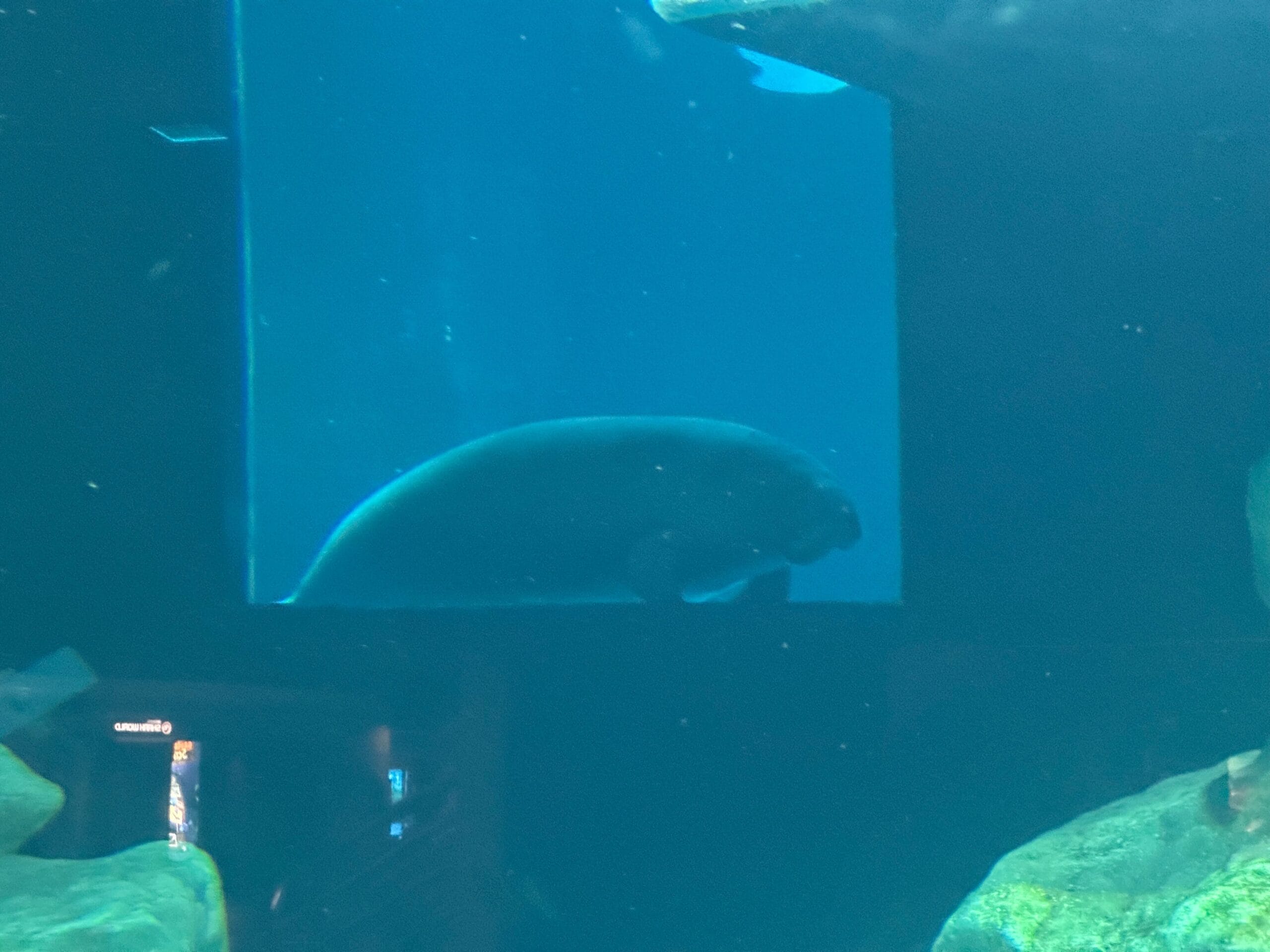 The manatees kept peeking through the window. Cider in particular seemed interested in the viewing tank.