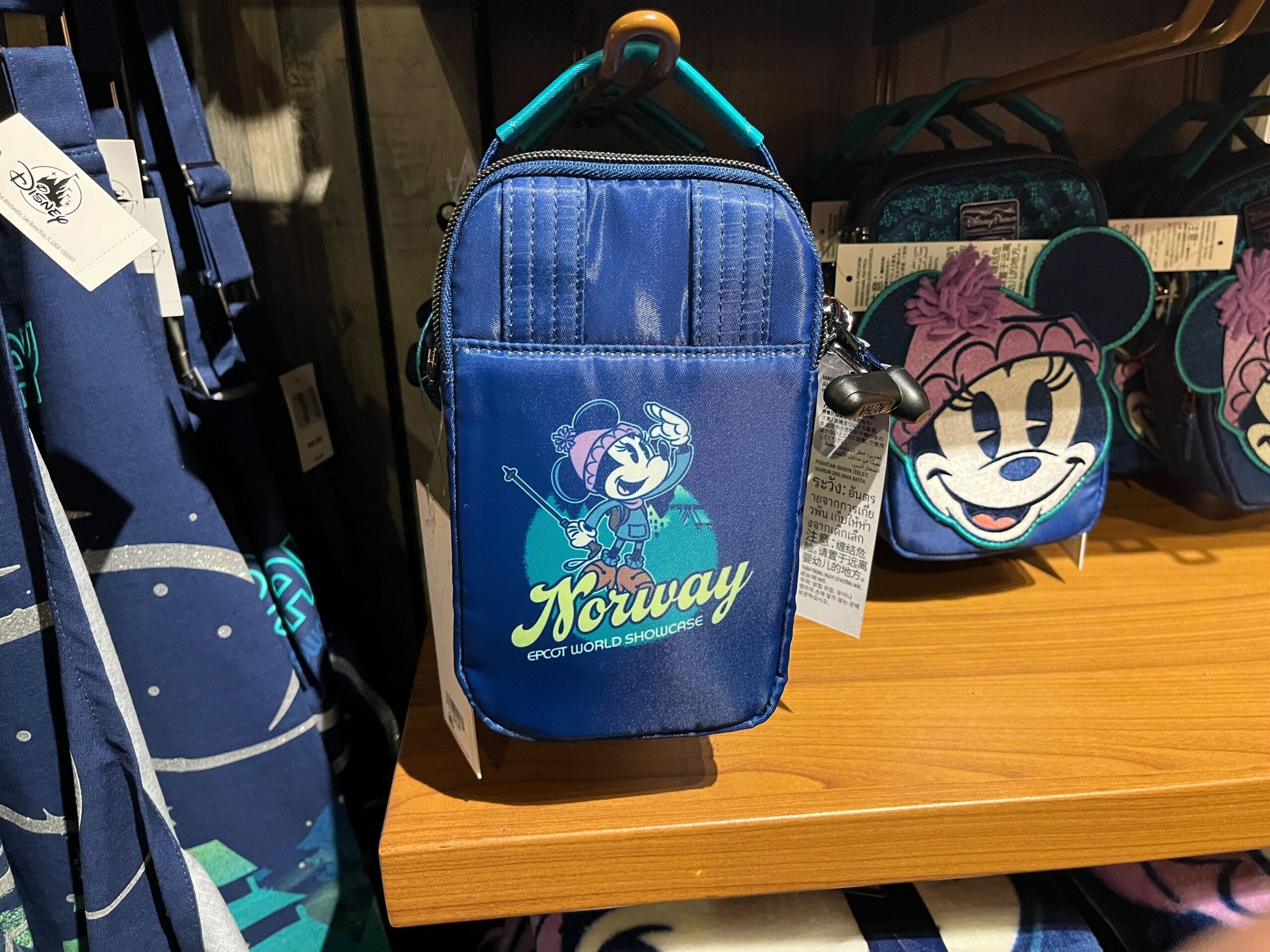 The back of the bag shows Minnie dressed in winter gear and gazing up into the sky with a walking stick in hand. Below her is the text “Norway EPCOT World Showcase.”