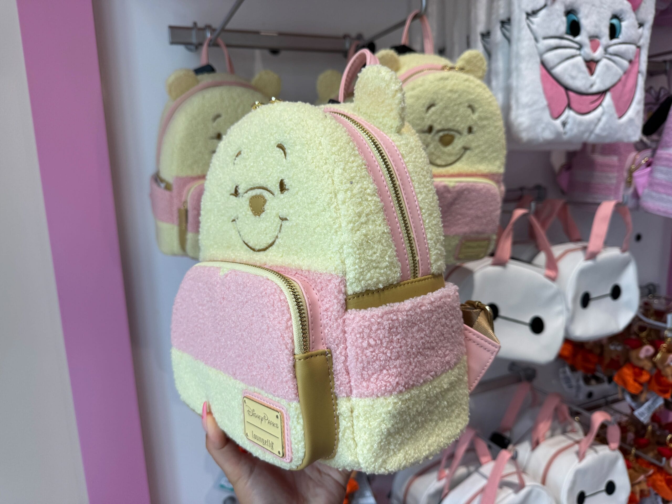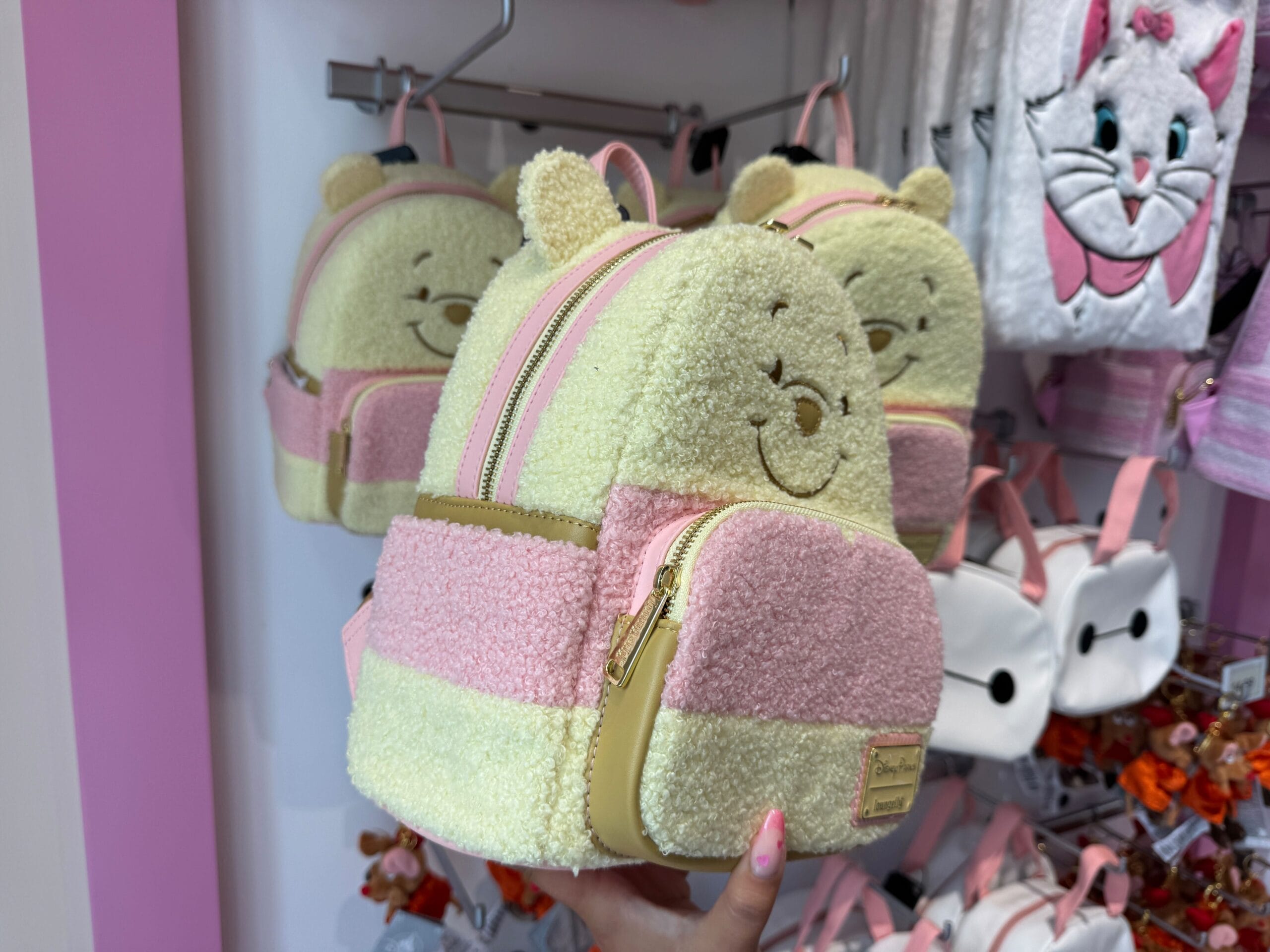 A new pastel Winnie the Pooh Loungefly mini backpack is available at Walt Disney World. The bag and matching ears are also available online from the Disney Store.