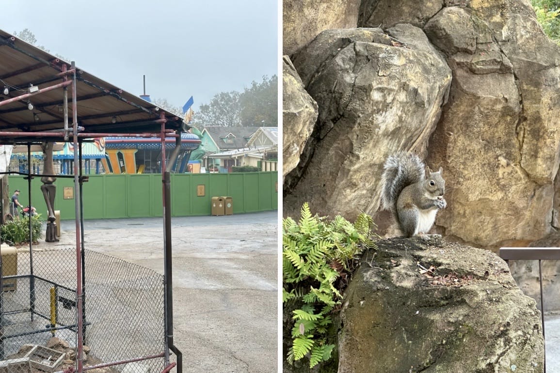 I know I am easily distracted, but the utterly slow pace at which Disney is deconstructing my childhood is both painful and sorta boring. There hasn’t been much progress at all since the walls went up, but how cute is that Squirrel eating breakfast?