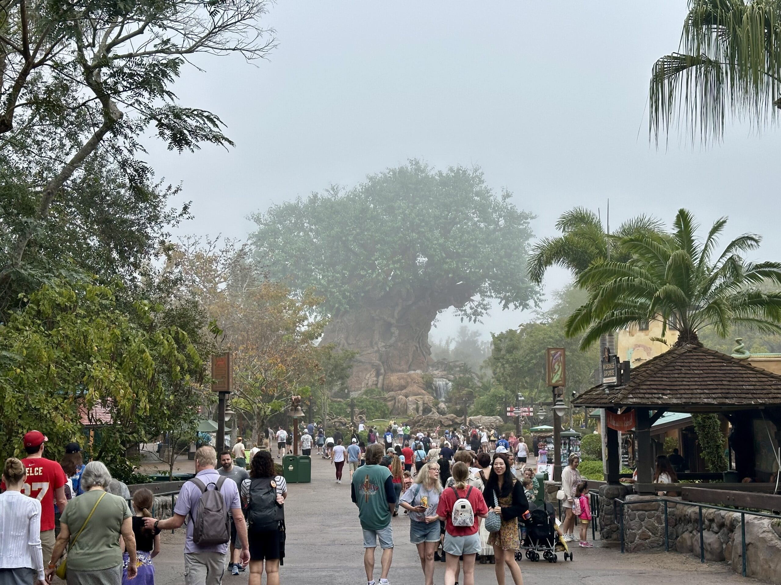 It was a foggy morning at Disney’s Animal Kingdom. When I arrived I was nervous I wouldn’t be able to see very much of the Dino-Rama destruction. I was surprised by how low the crowds have been lately, though. Again, I don’t think there is a slow season anymore, but there are certainly better times than others.