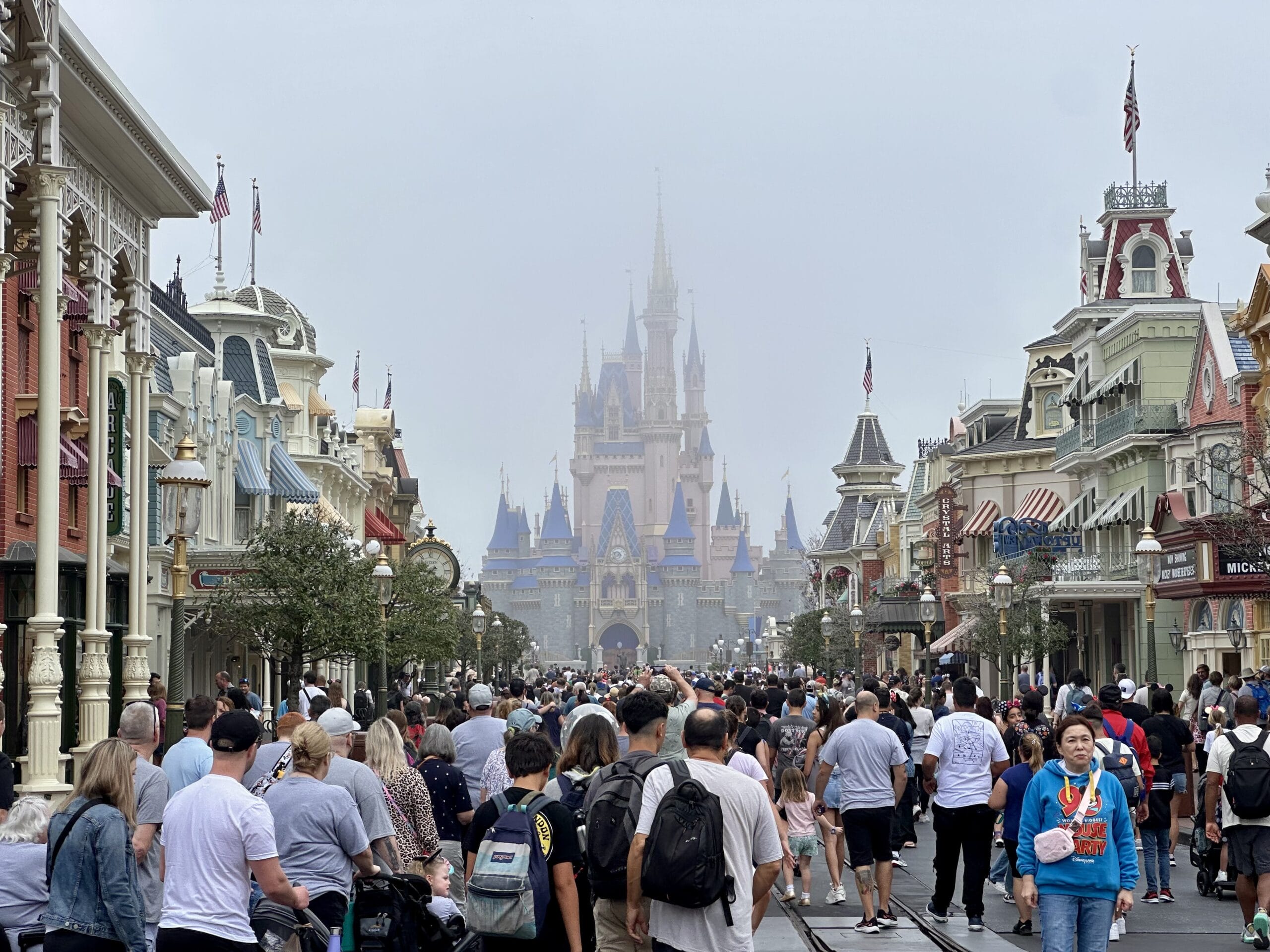 It’s not even 10 a.m. but the fog is unrelenting this morning. It’s always spooky seeing the castle at the end of Main Street U.S.A. hidden in the fog.