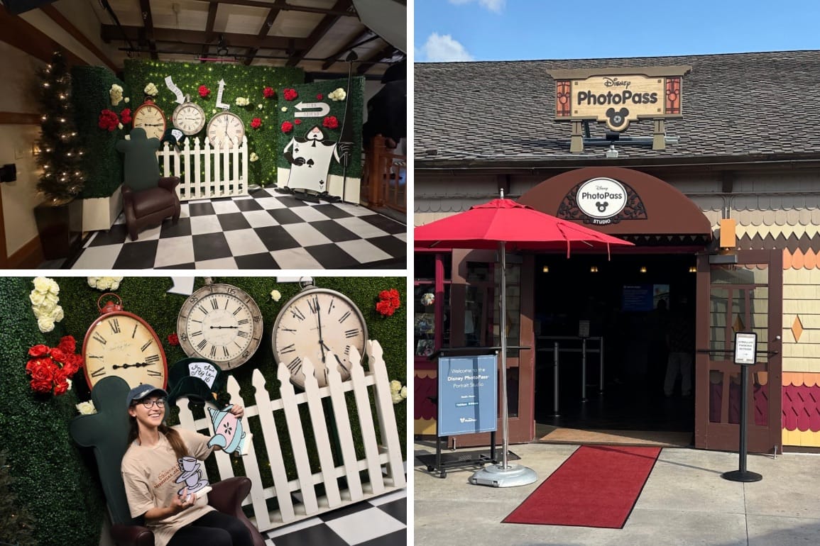 Much to my mother’s dismay I do not frequent the PhotoPass sets. In Disney Springs they currently have an ‘Alice in Wonderland’ themed photo spot with props. I’ll spare you my school-like photoshoot, but if you’re interested in learning more please visit our website.