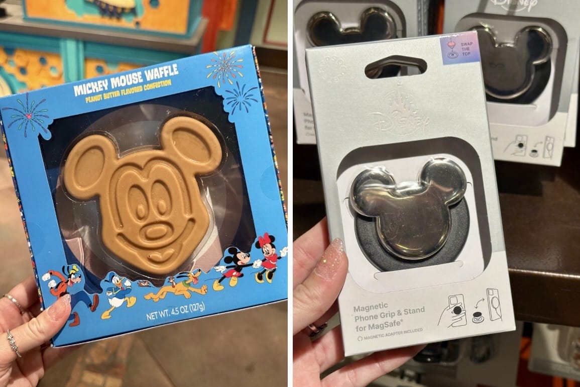 In Discovery Trading Company I found a chrome Mickey magnetic phone grip and stand for MagSafe phone cases. I’m a big fan of the magnetic attachments. I also love the magnetic chargers, but fair warning if you use a magnetic case, it will overheat when you are in the parks unless it’s the two weeks it’s below 50℉ outside. The chrome Mickey attachment is available for $34.99.
