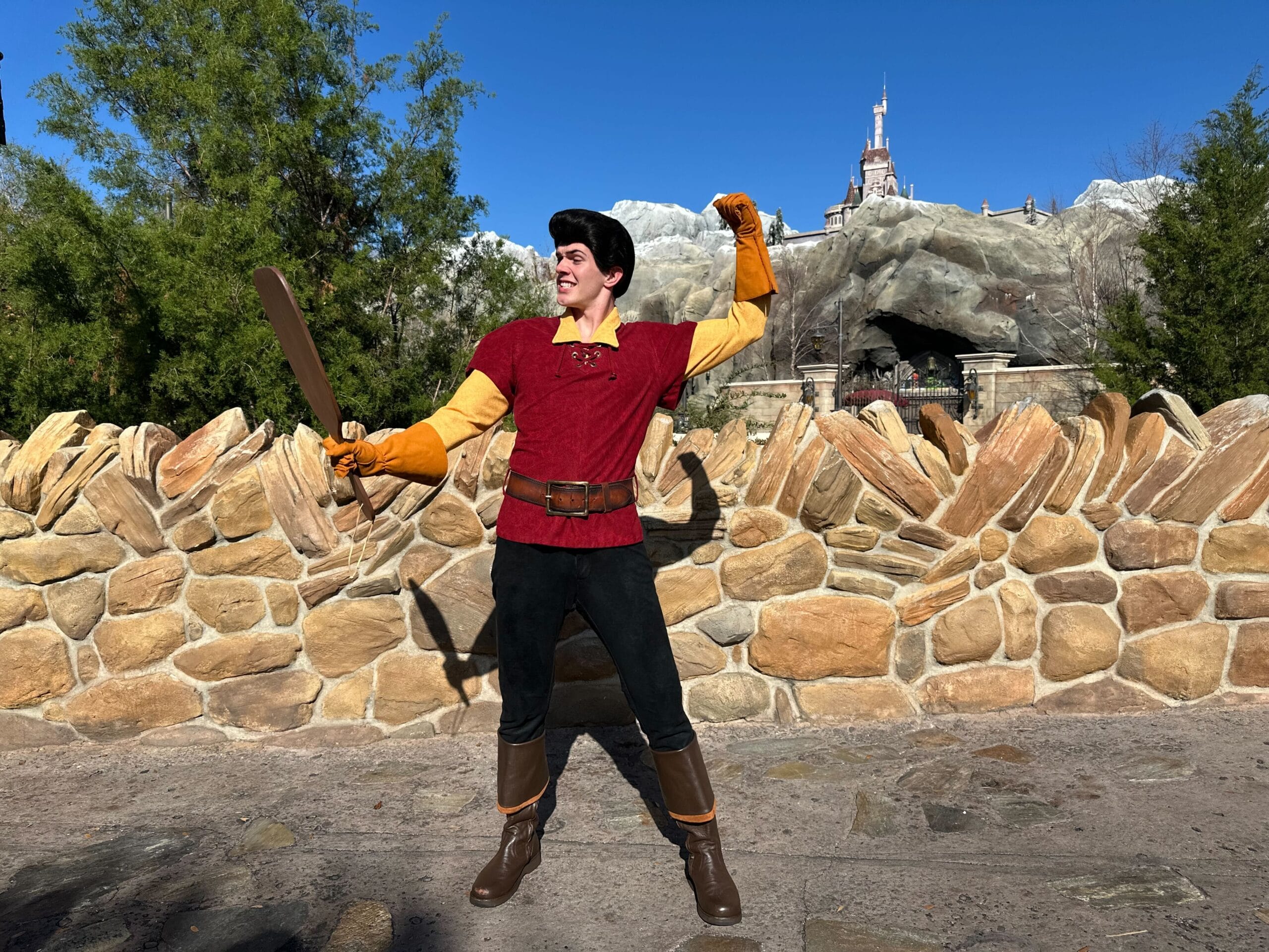 No Valentine’s Day would be complete without seeing one of the most iconic Disney couples: Gaston and his own reflection. Gaston was walking the streets of Fantasyland near the entrance to Be Our Guest Restaurant.