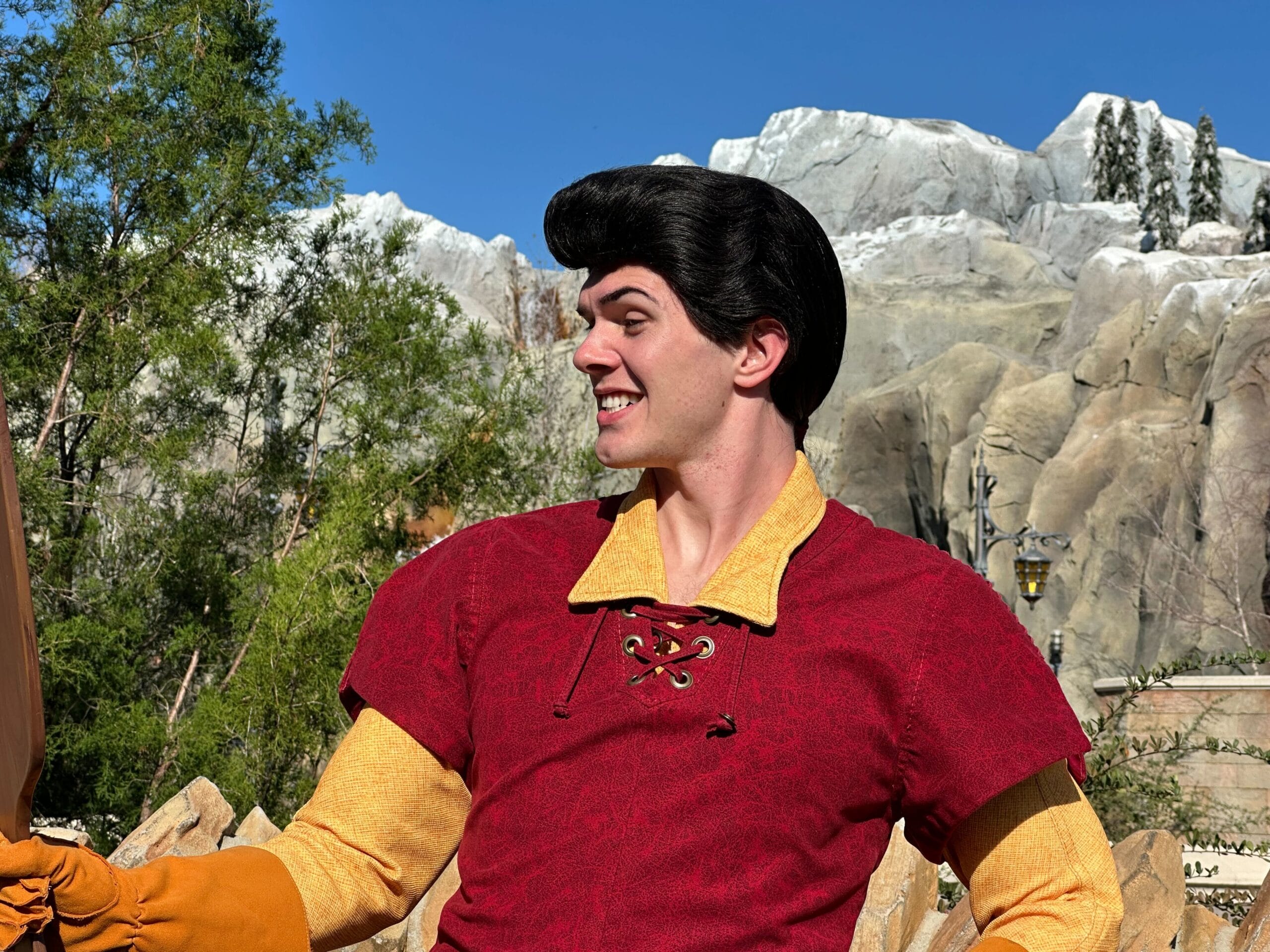 Guests stopping by to take photos can have the honor of holding up Gaston’s mirror, so he can get a good look at himself. He might even strike a pose if you compliment his appearance.