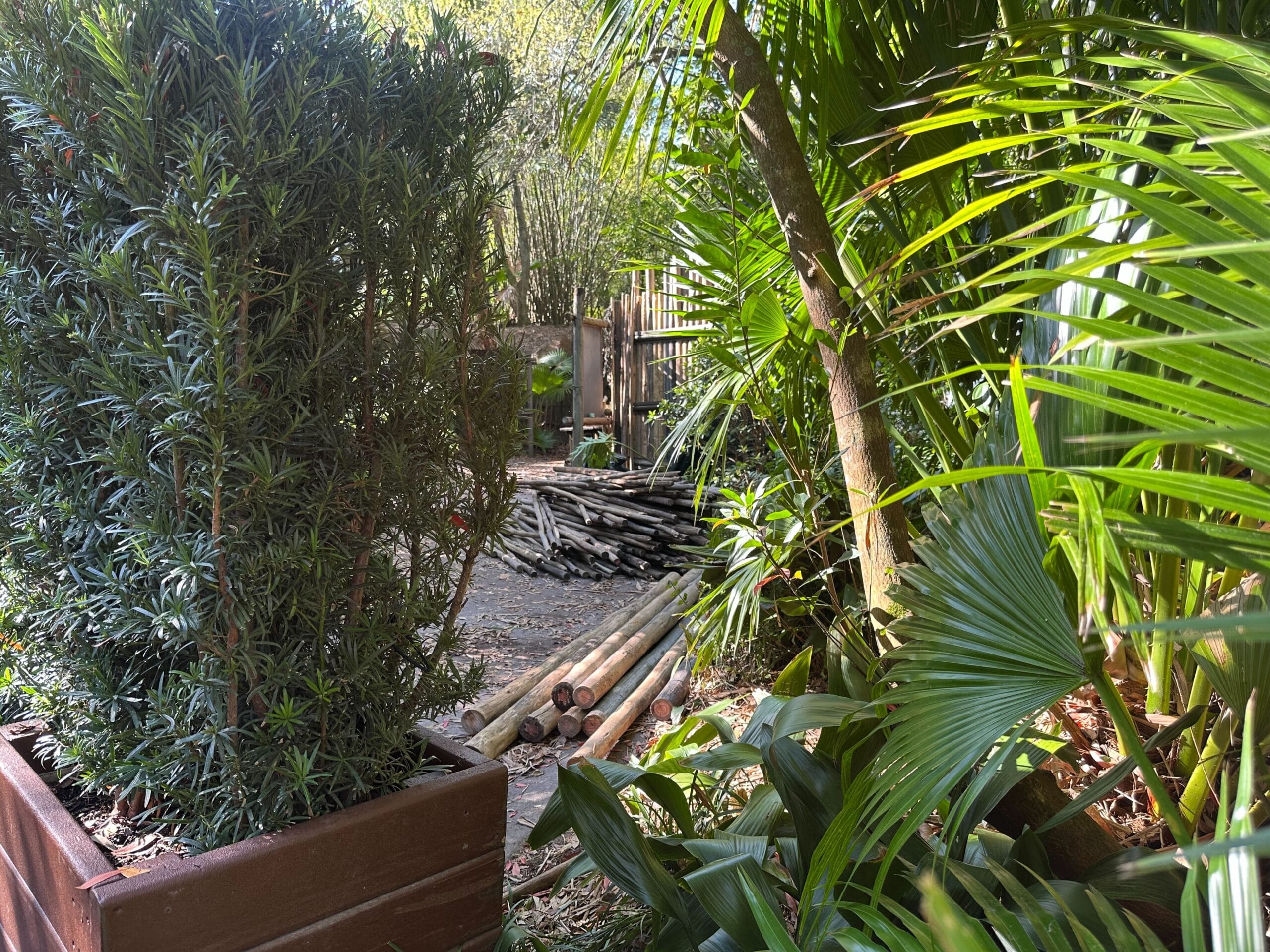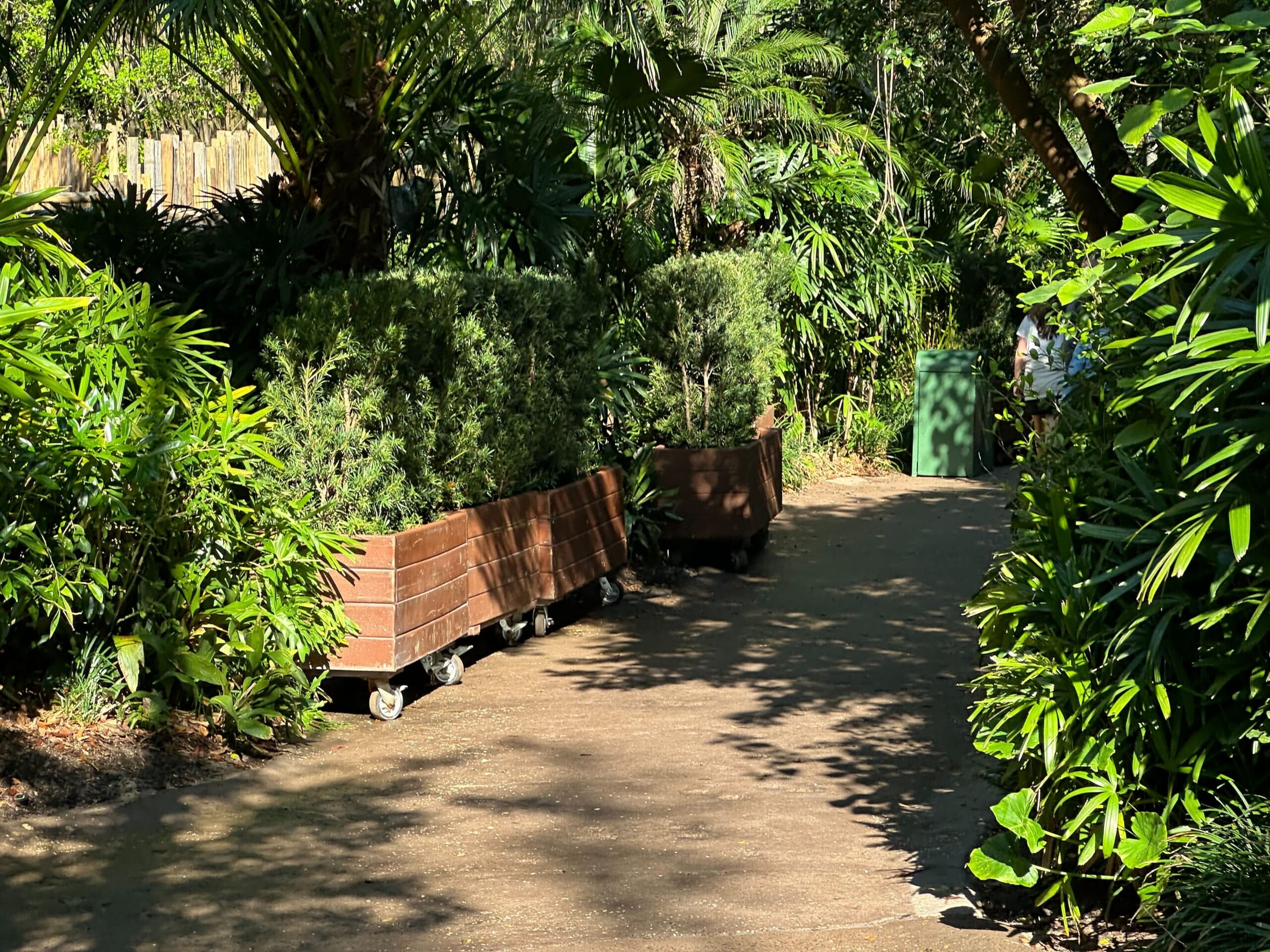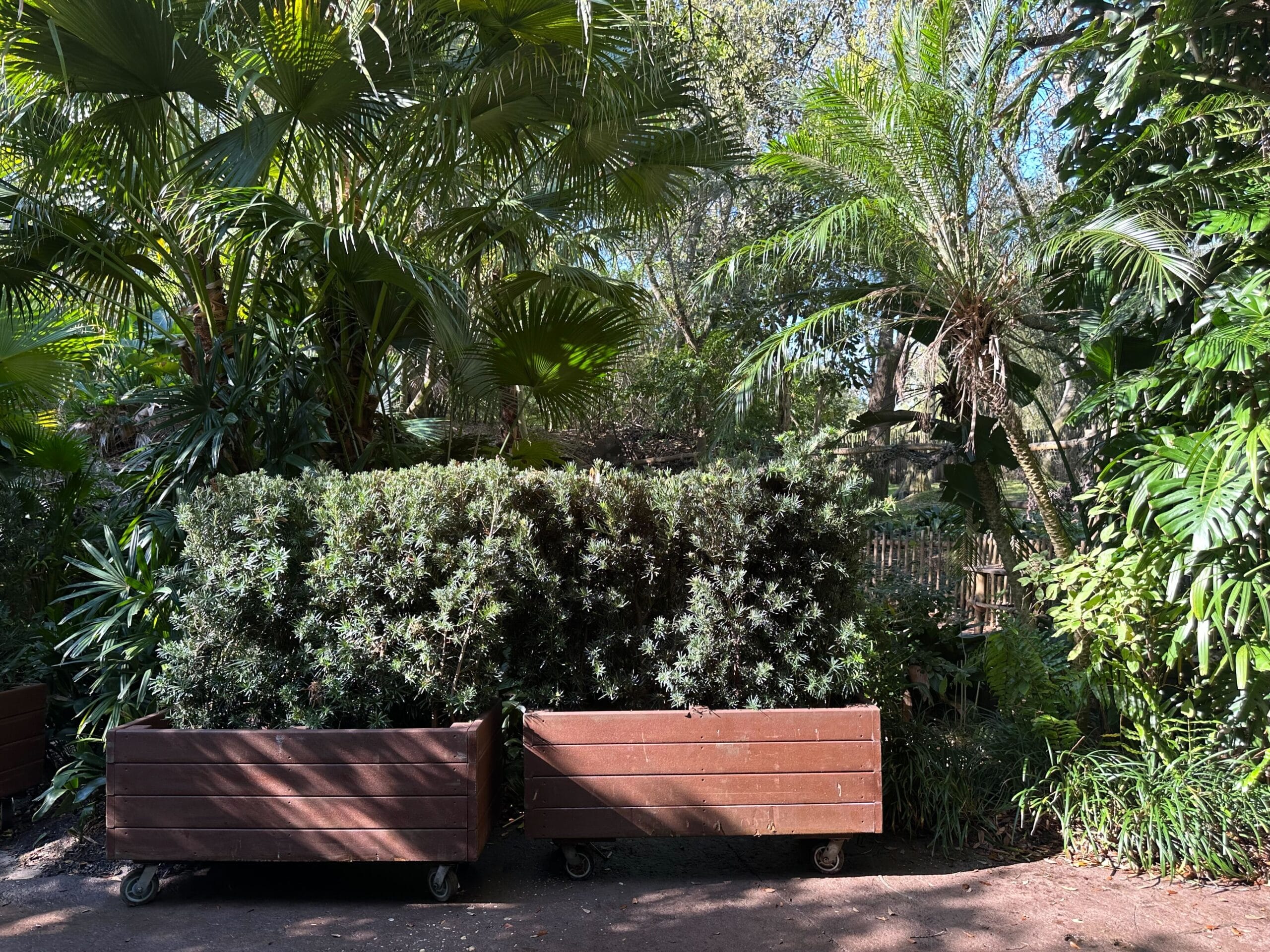 Rolling planters have been set up at the Yellow-backed Duiker exhibit in Disney’s Animal Kingdom.