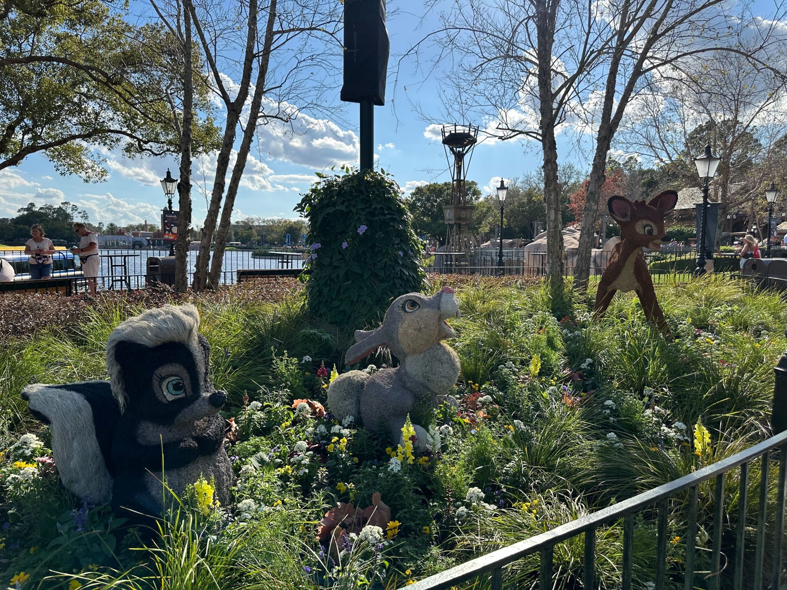 Bambi, Thumper, & Flower are near the entrance to World Showcase, not far from the Canada pavilion.