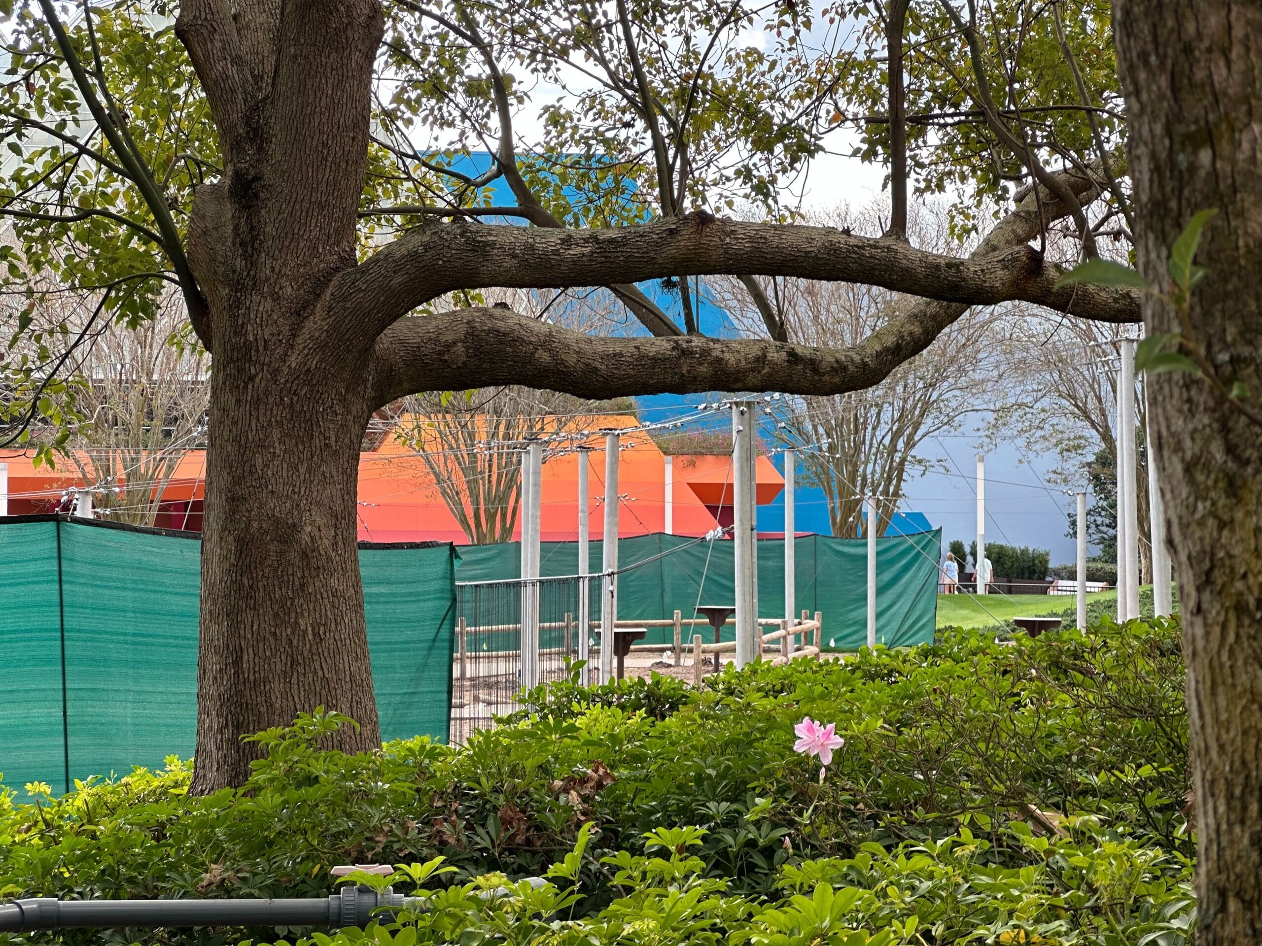 Disney announced that the playground under construction behind the Expression Section will be the Playalong Bay Play Garden presented by Smucker’s Uncrustables, inspired by Stormalong Bay pool at Disney’s Yacht Club Resort. The temporary playground features a “Cozy Dome,” and slanted sets of posts that look like ship masts.