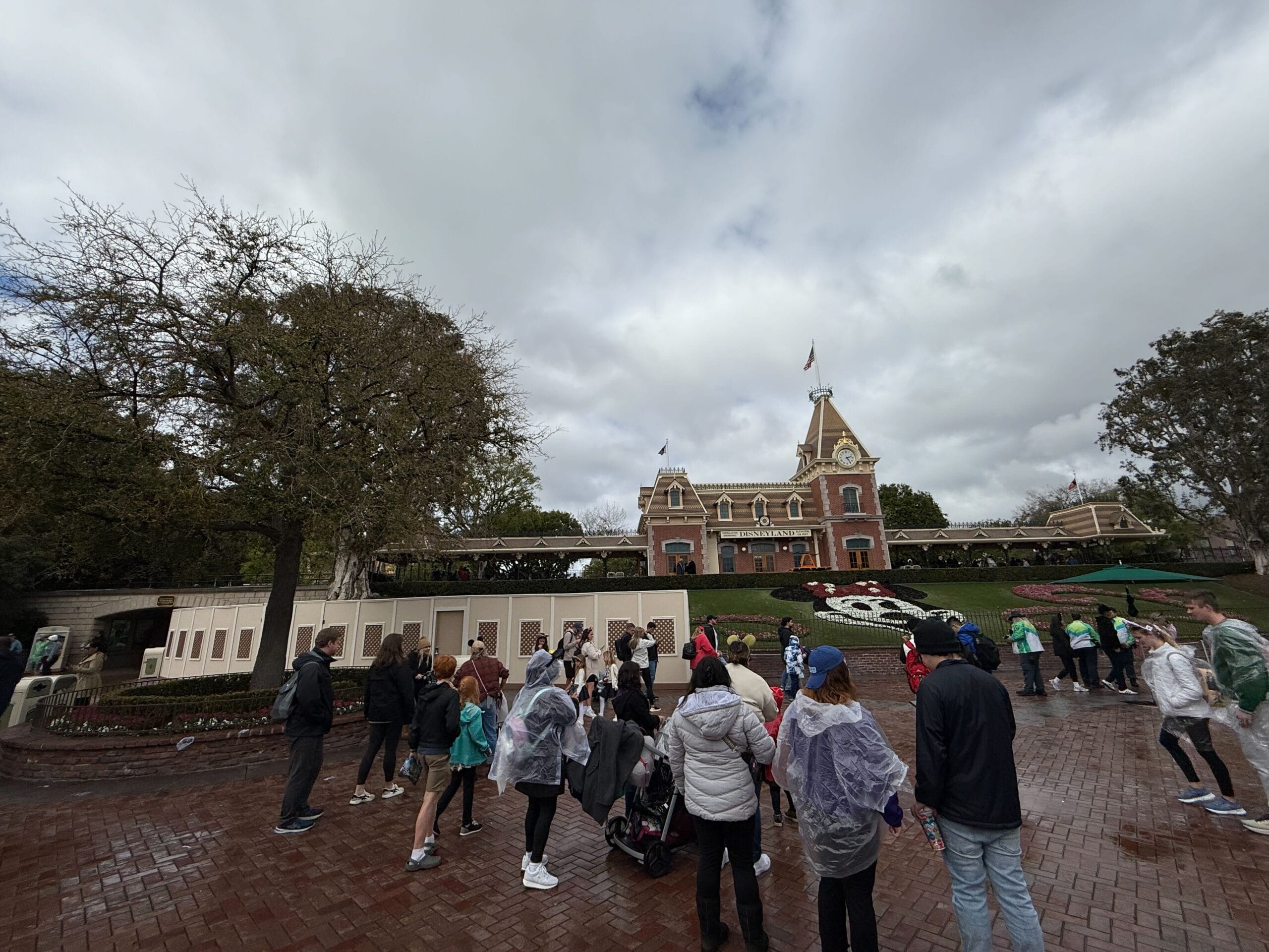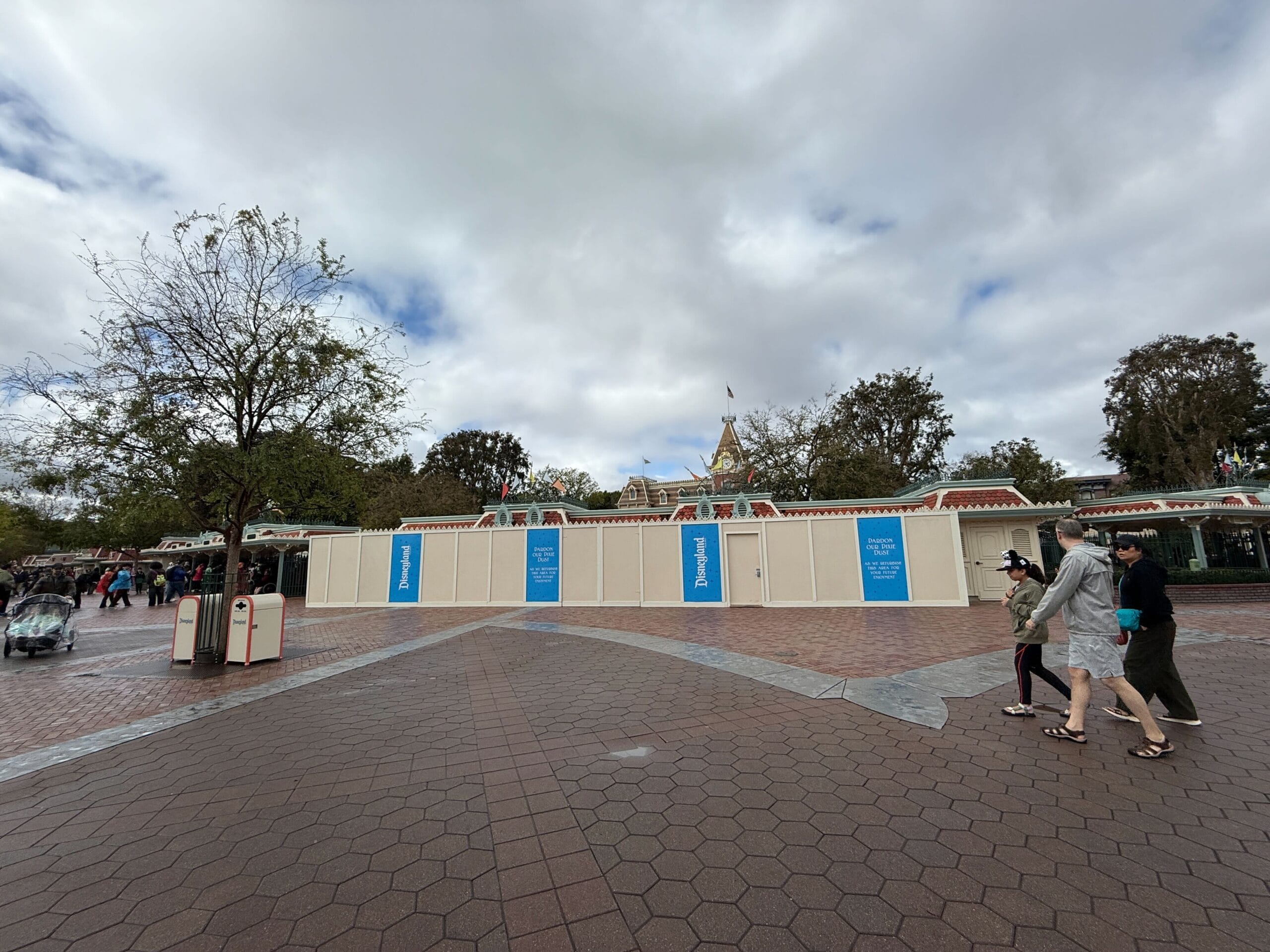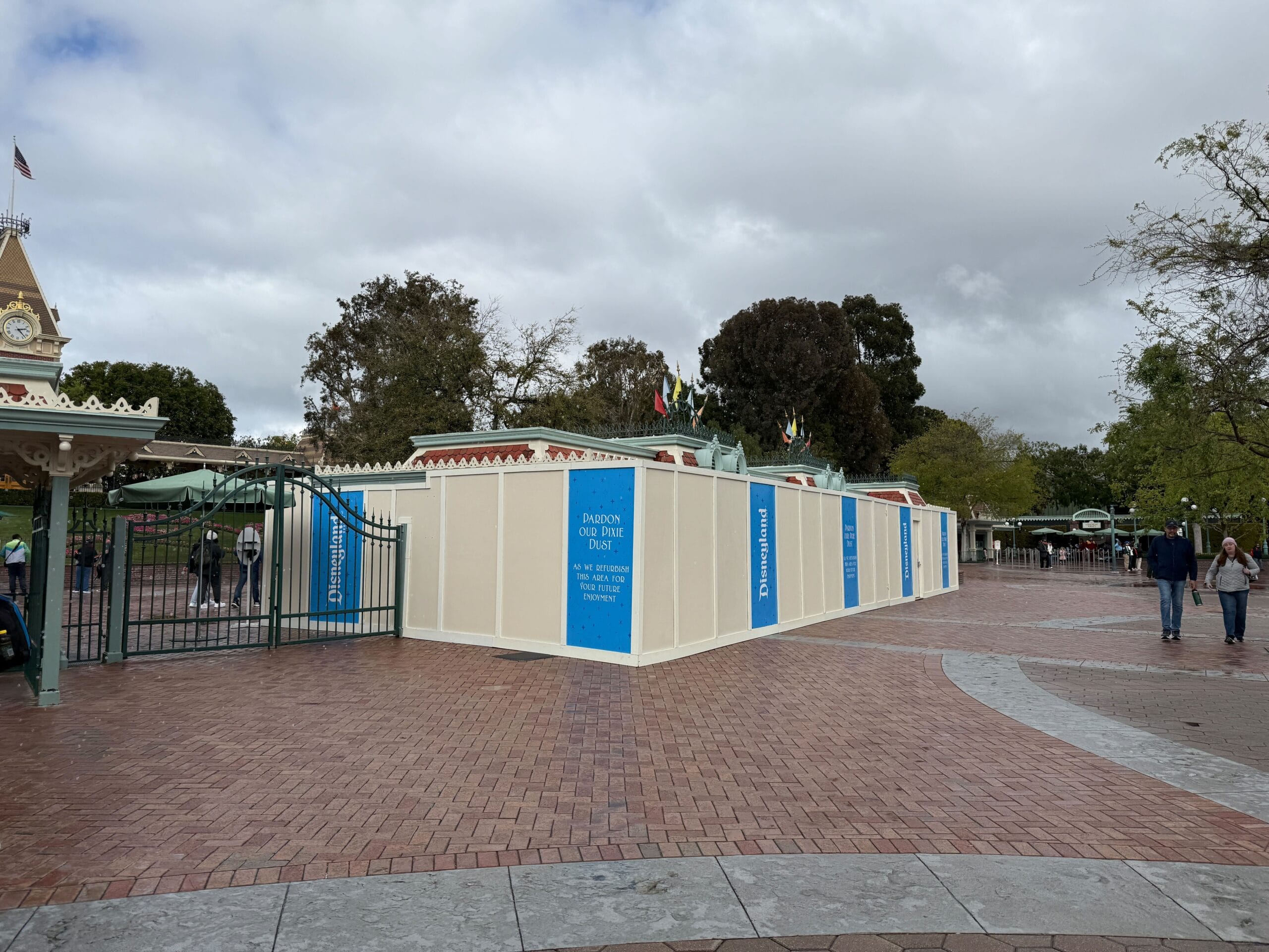 Though likely unrelated, there are also construction walls just inside the park on the left of the Minnie Mouse flowerbed (the flowers are usually arranged like Mickey but become Minnie for Women’s History Month).