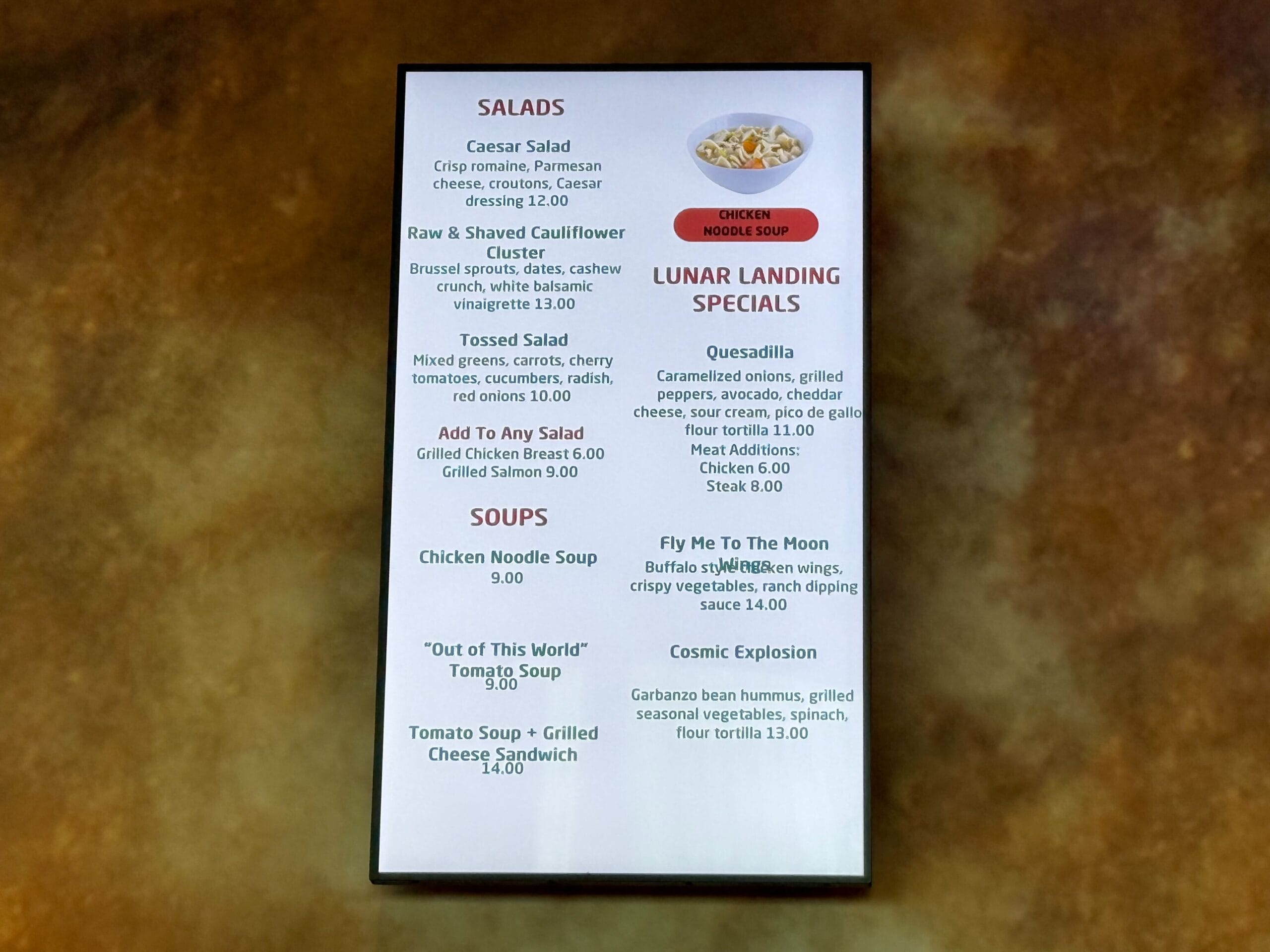 Soups | Salads | Flattop + More | Lunar Landing Specials | Kids | Pizza + More | Sides | Desserts