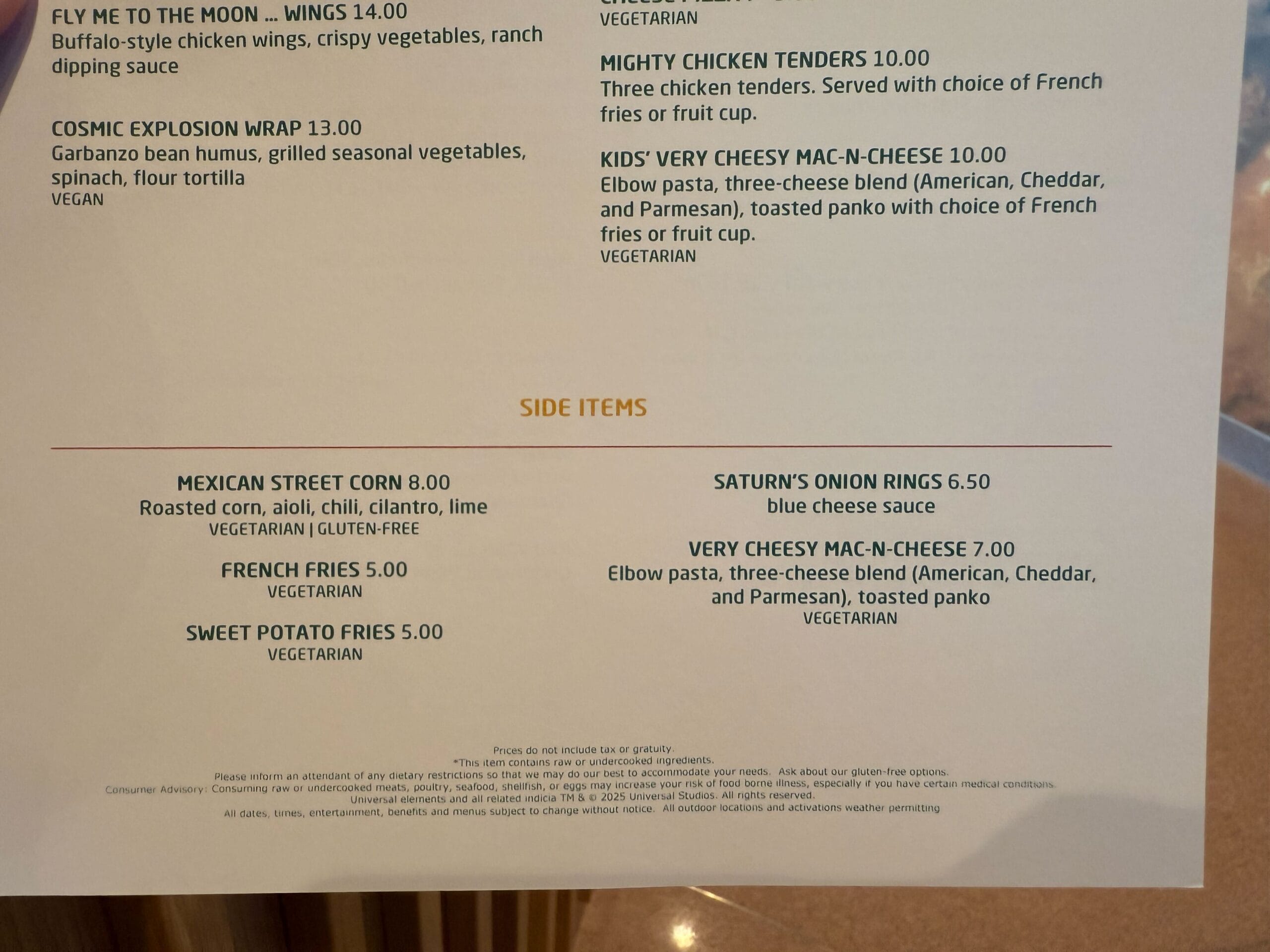 - Kids’ Very Cheesy Mac-n-Cheese (Vegetarian) – $10
