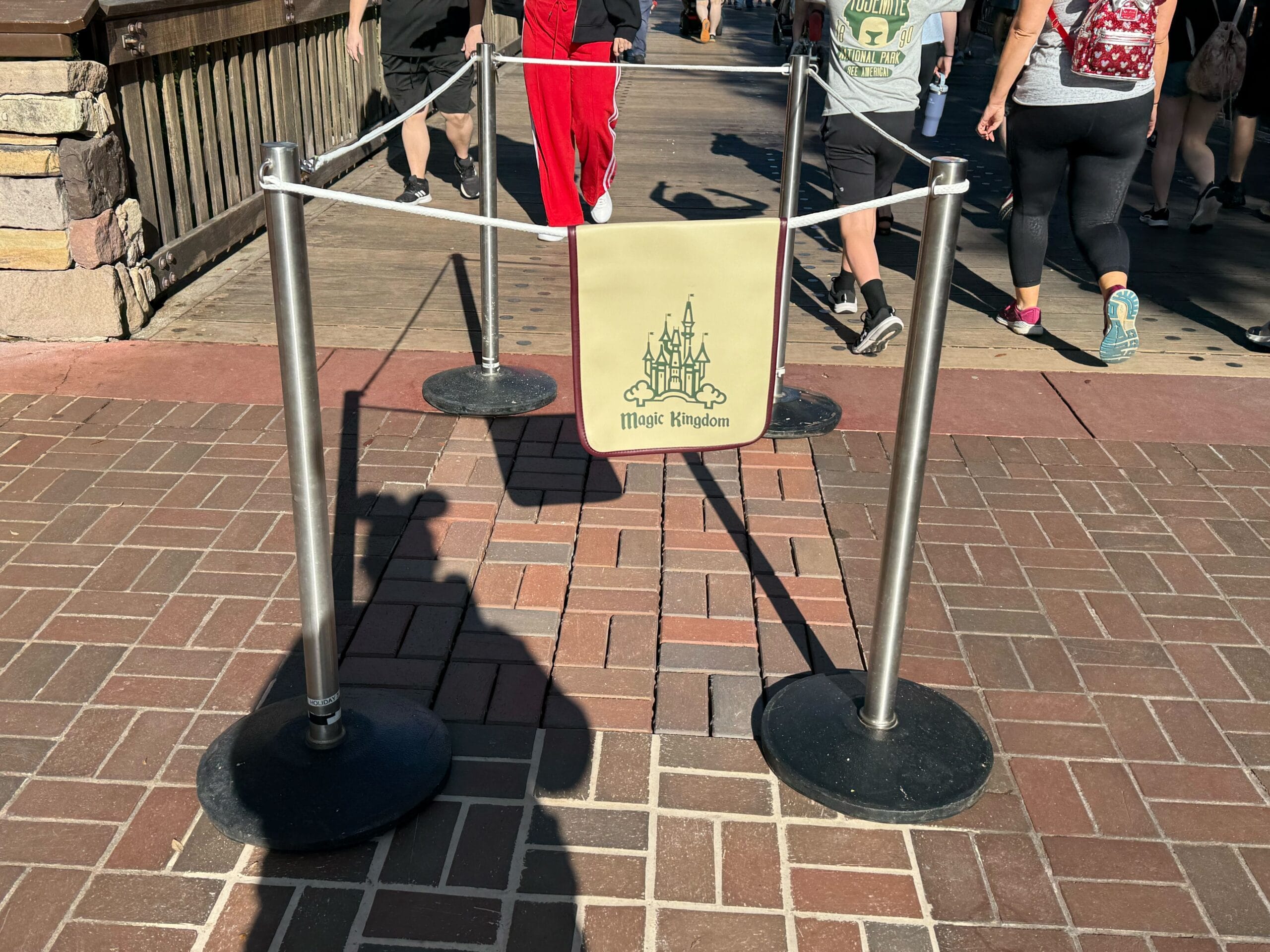 On Wednesday morning, the freshly placed bricks were surrounded by stanchions to keep guests from walking on them. These came down later in the day so the park’s cavalcades and Festival of Fantasy Parade could pass over the bridge.