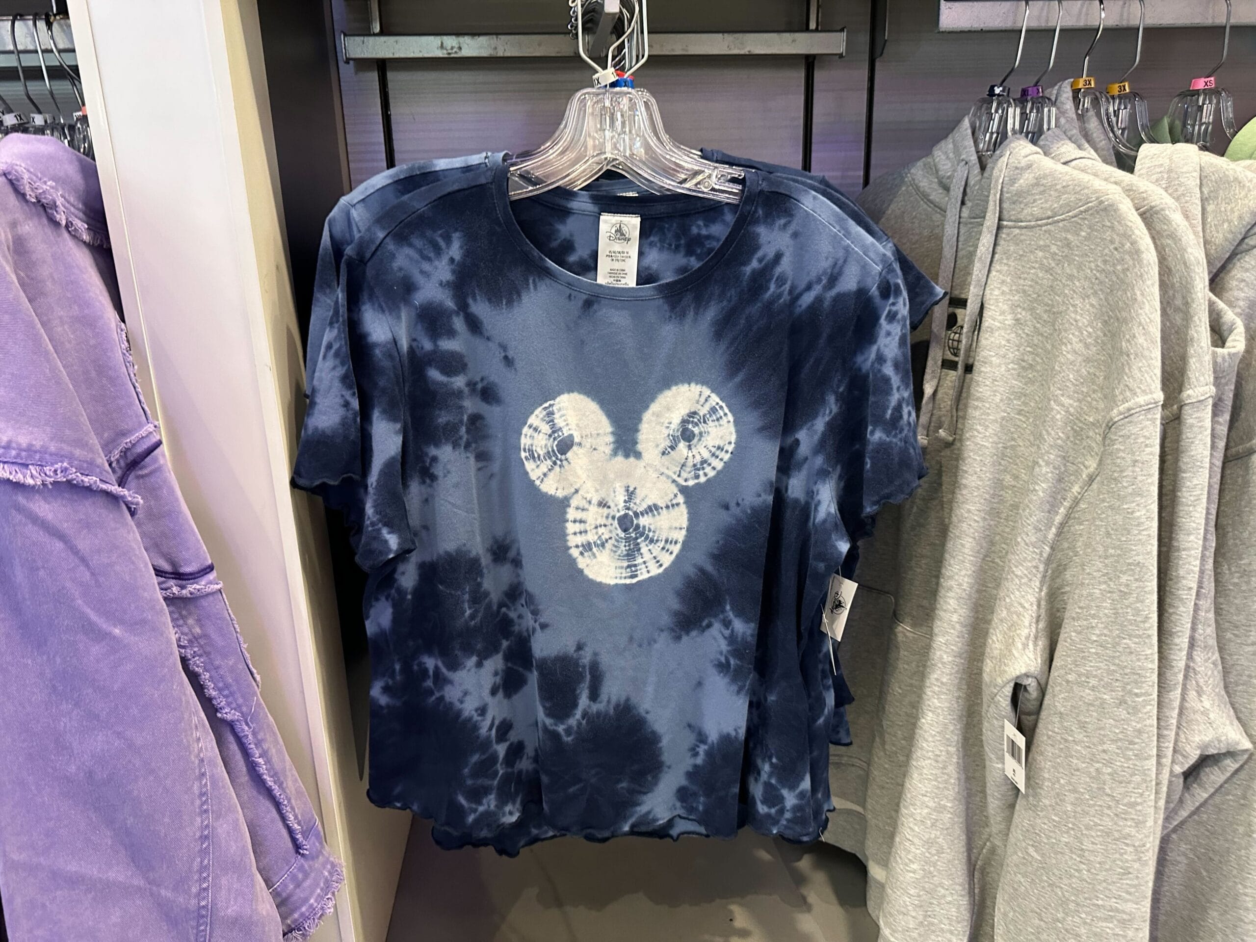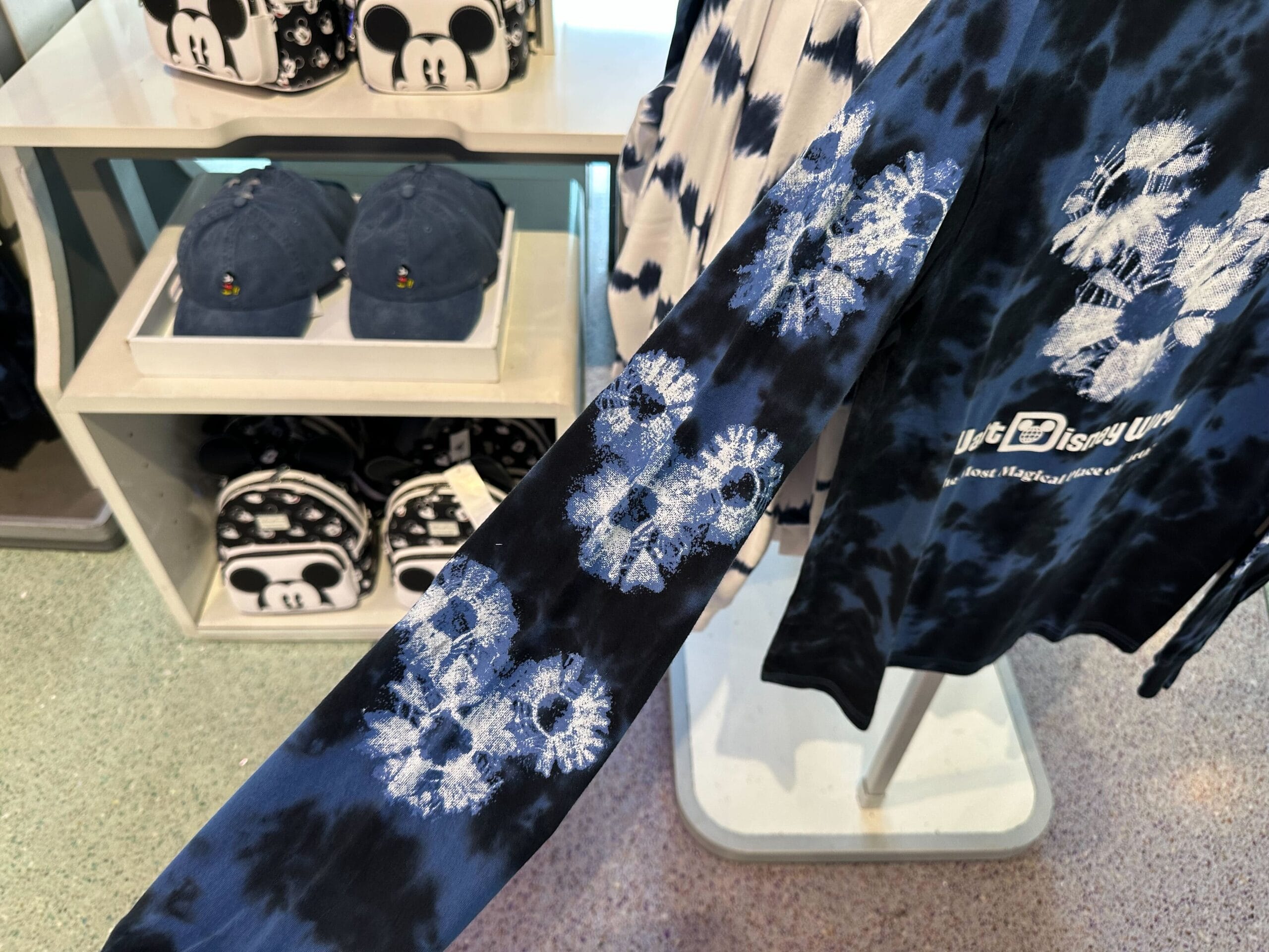 This new Mickey Mouse apparel collection at Walt Disney World features tie-dye patterns and a blue color scheme.