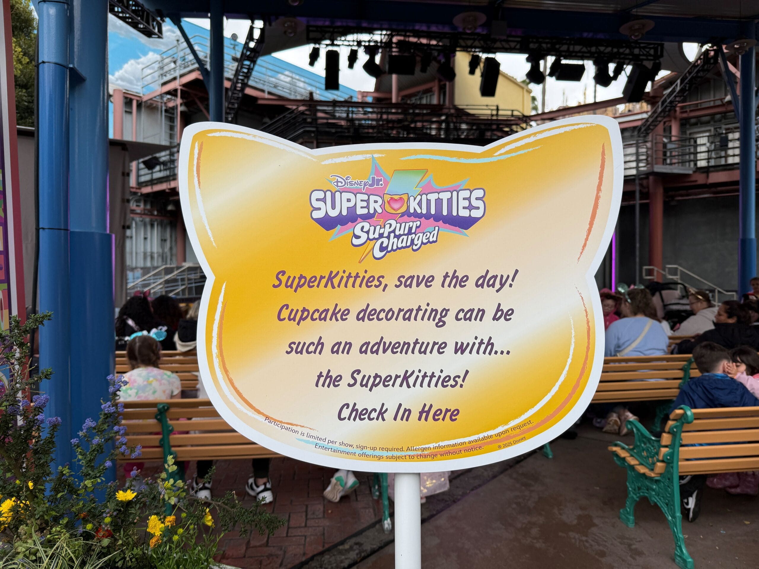Confection Purrfection with the SuperKitties is performed at the Hollywood Backlot Stage in Hollywood Land. It’s on Saturdays through Wednesdays during the festival (through April 21, 2025). Performances are at 1:30 p.m. and 2:30 p.m. on the weekends. On Mondays through Wednesdays, there are additional performances at 4 p.m. and 5 p.m.
