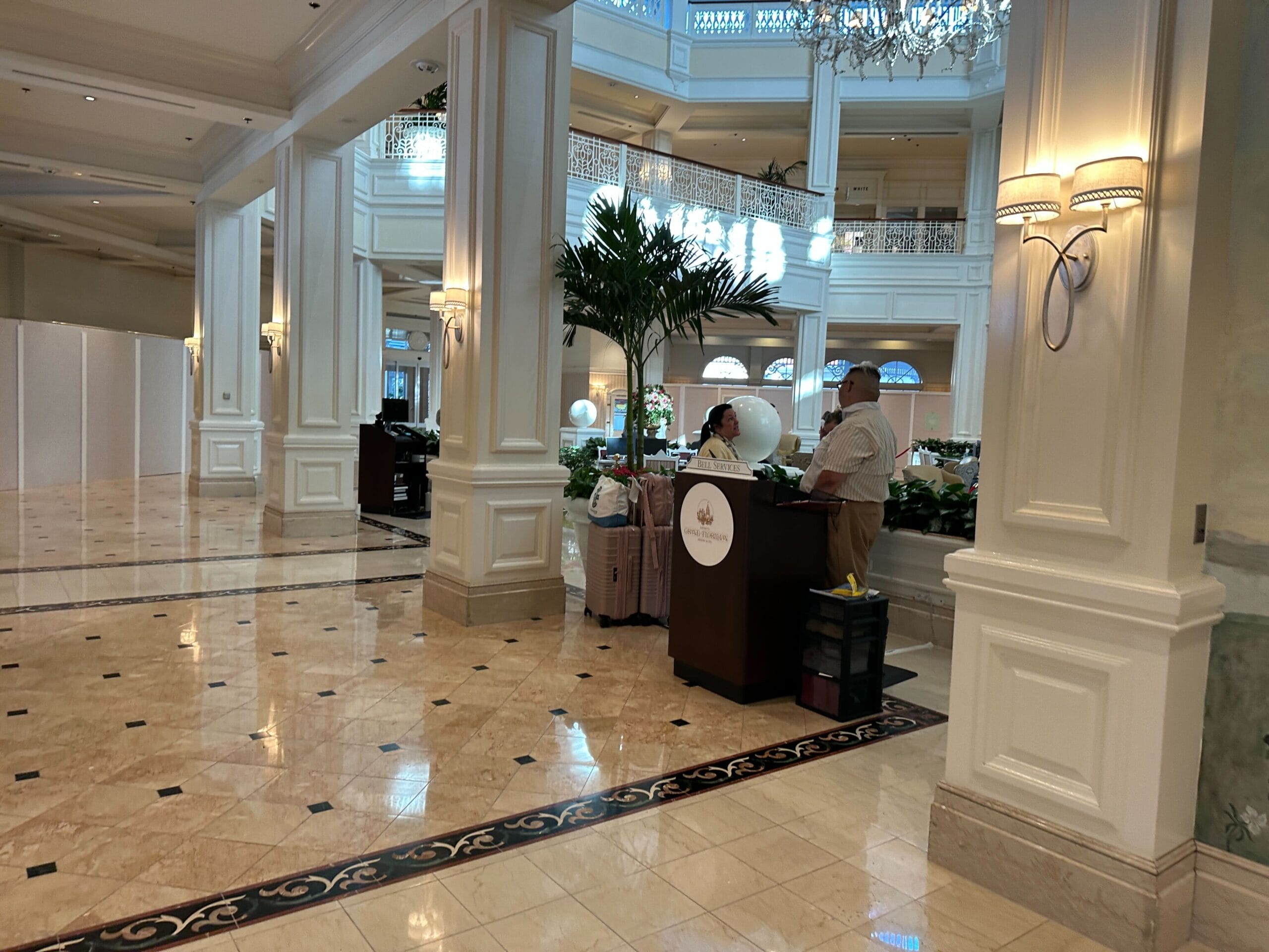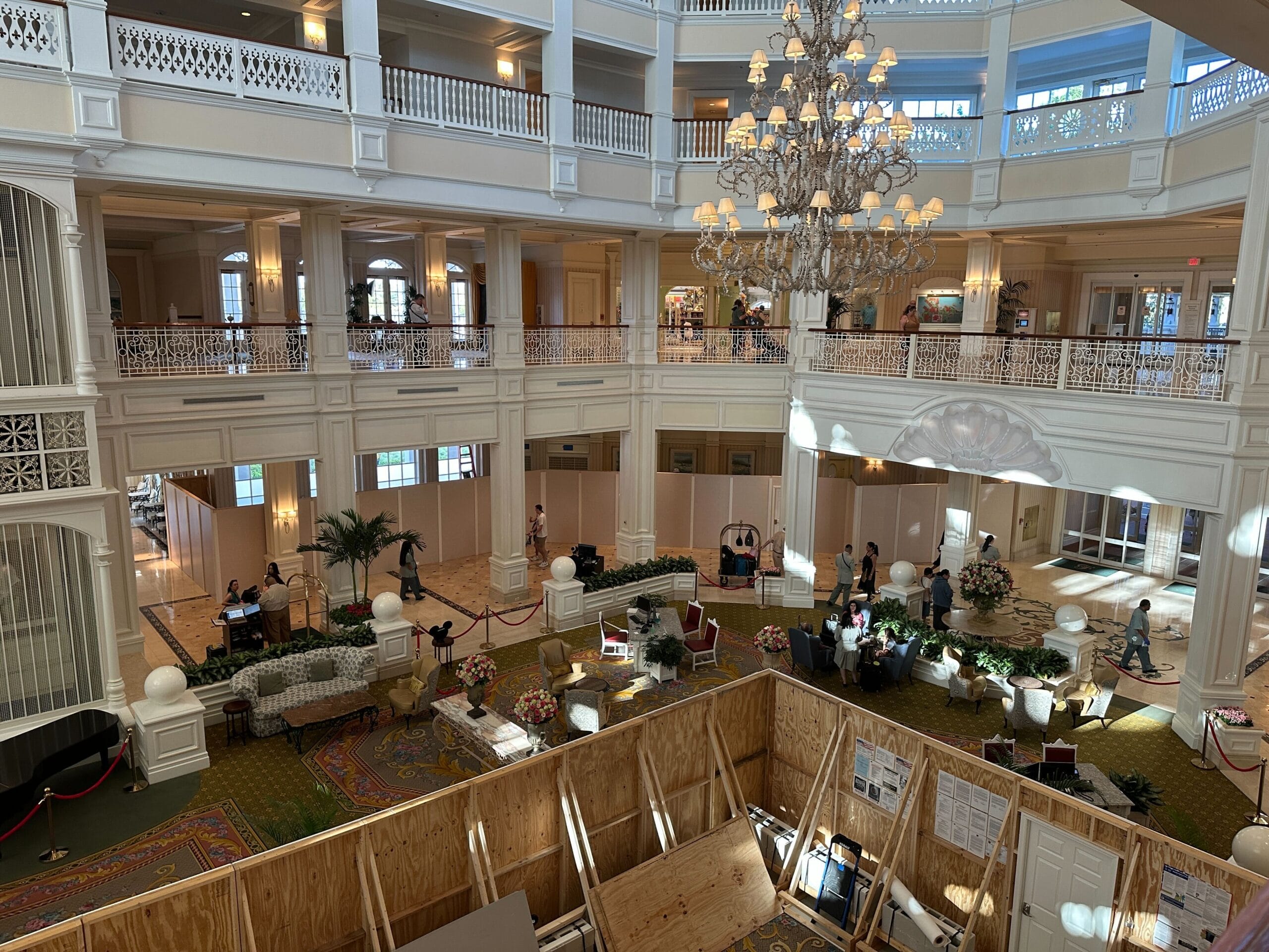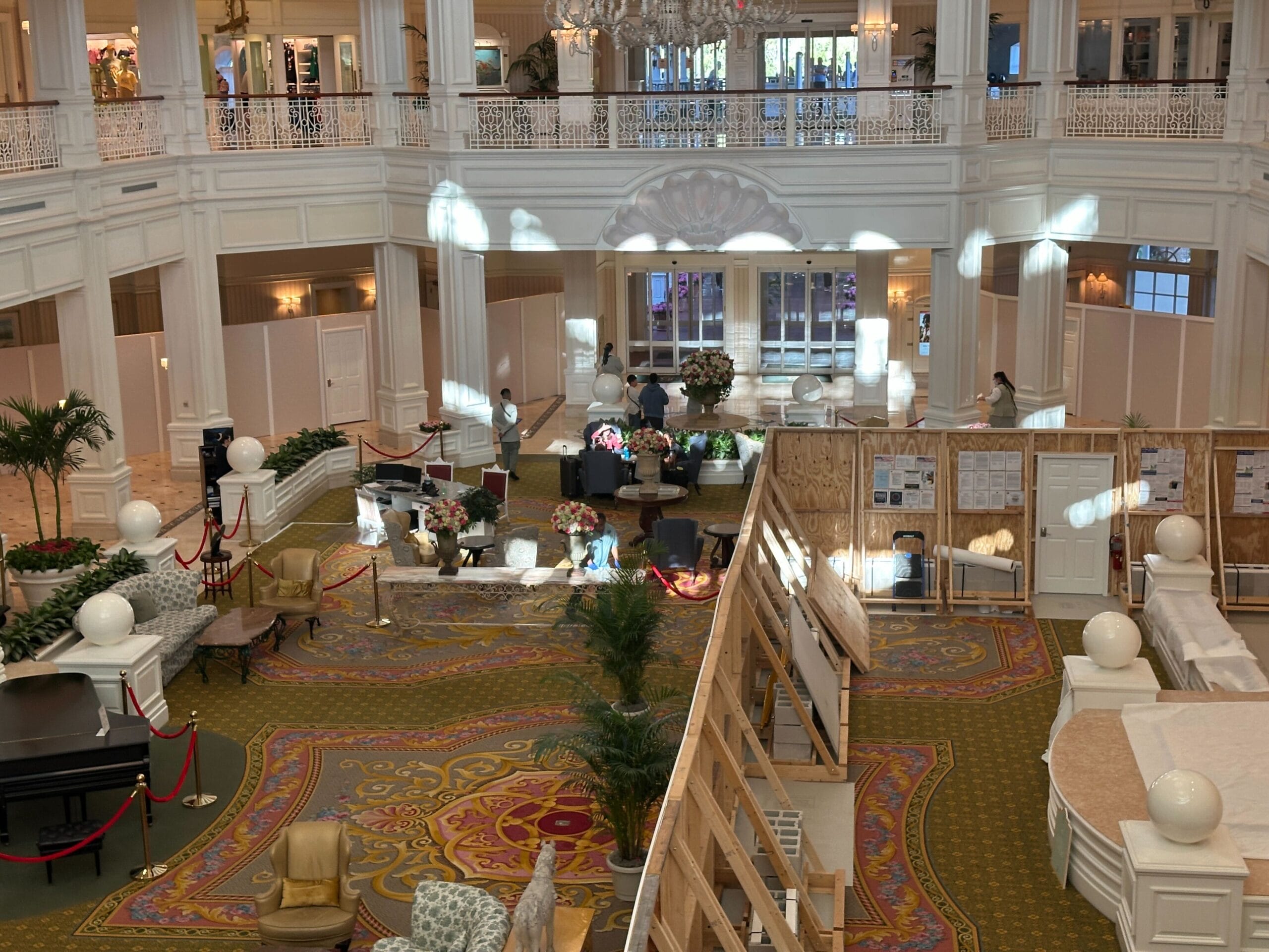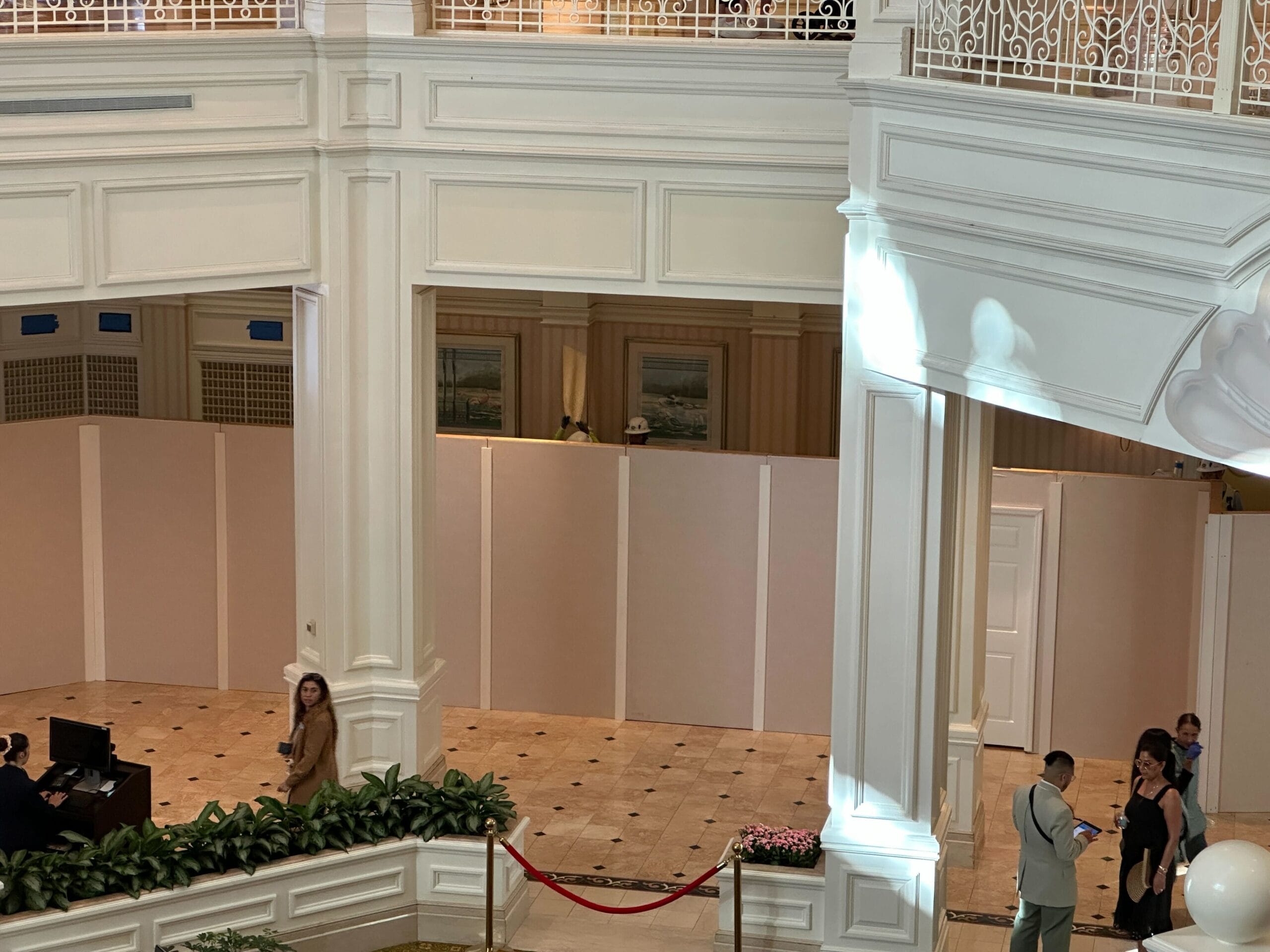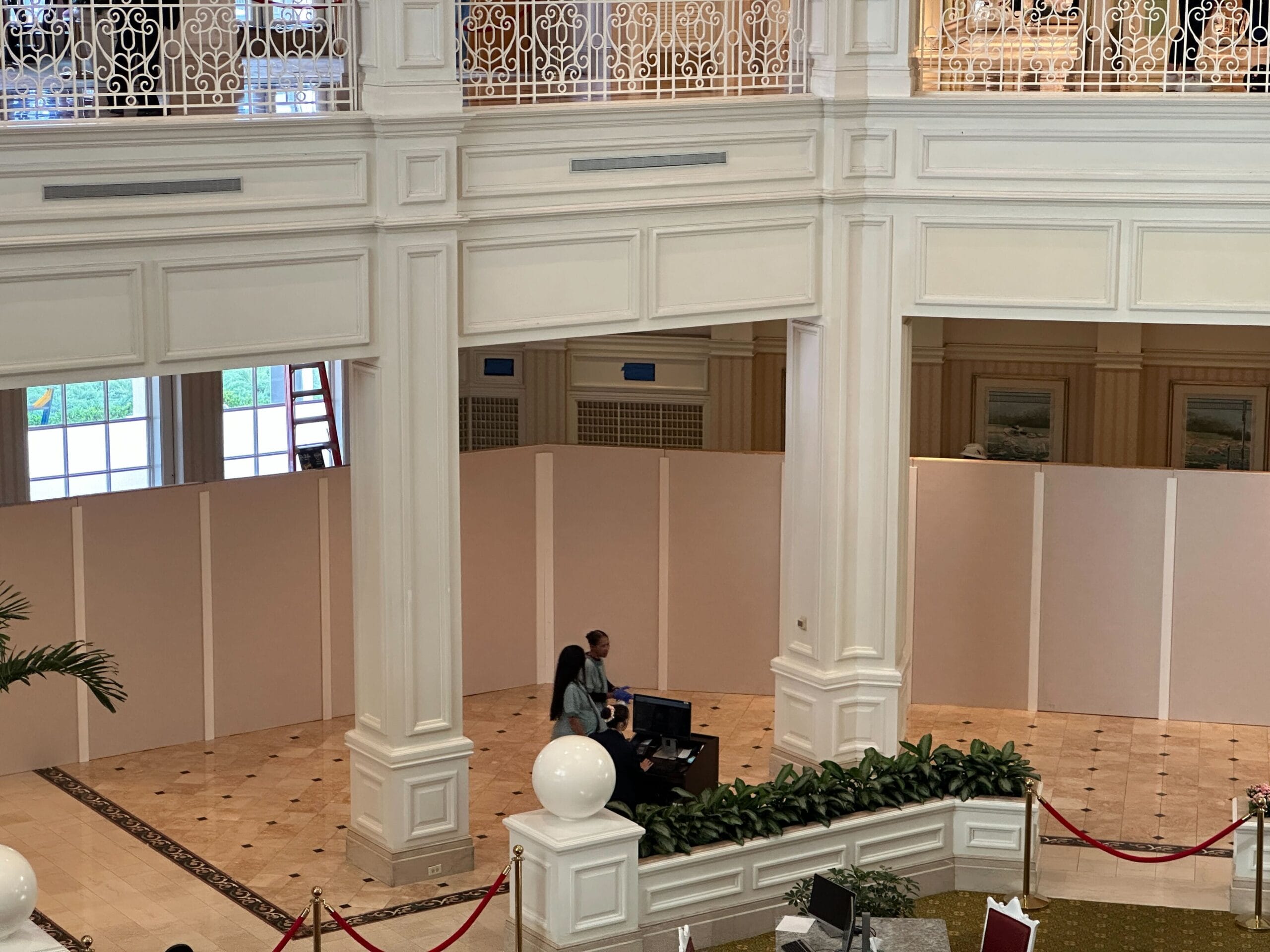 More construction walls are up in the lobby of Disney’s Grand Floridian Resort, forcing check-in to move.