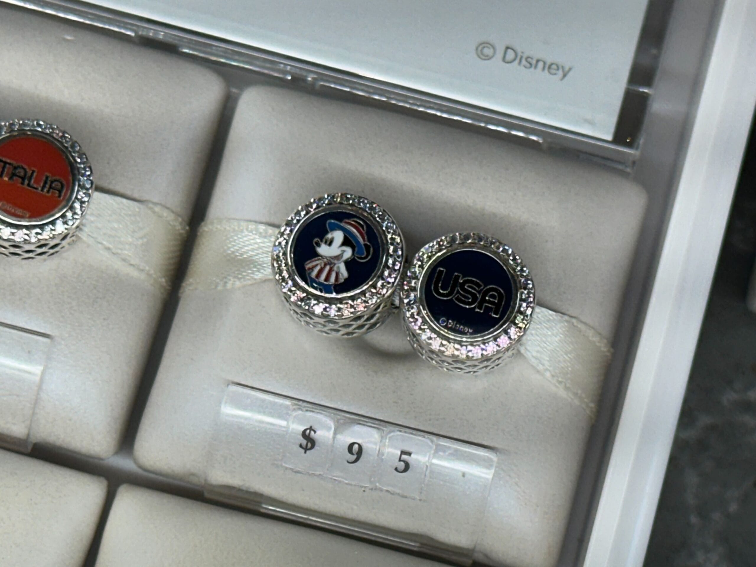 Pandora charms featuring the World Showcase countries of Italy, Germany, and The American Adventure pavilion are now available at EPCOT. We found the charms at the Port of Entry shop.