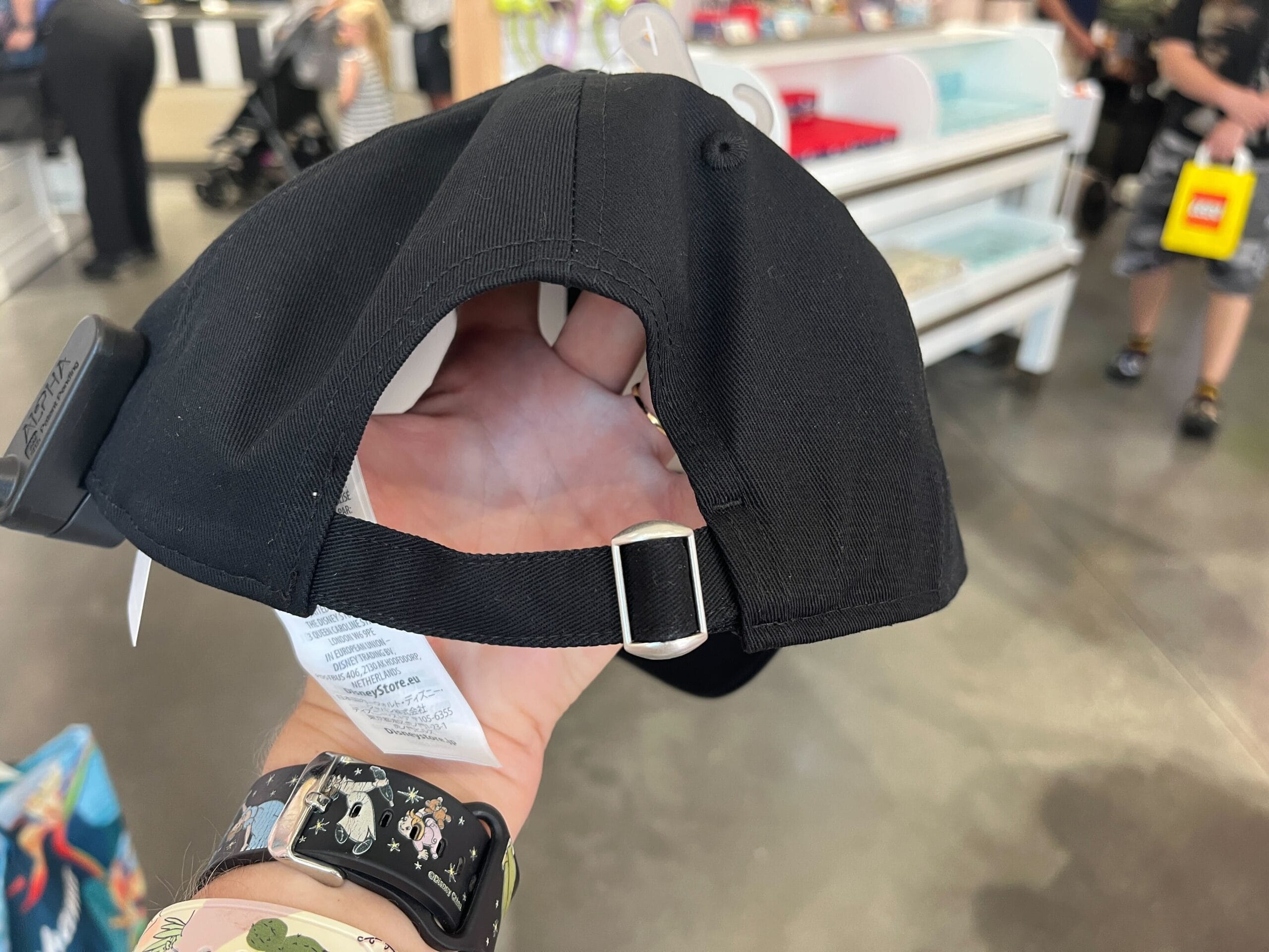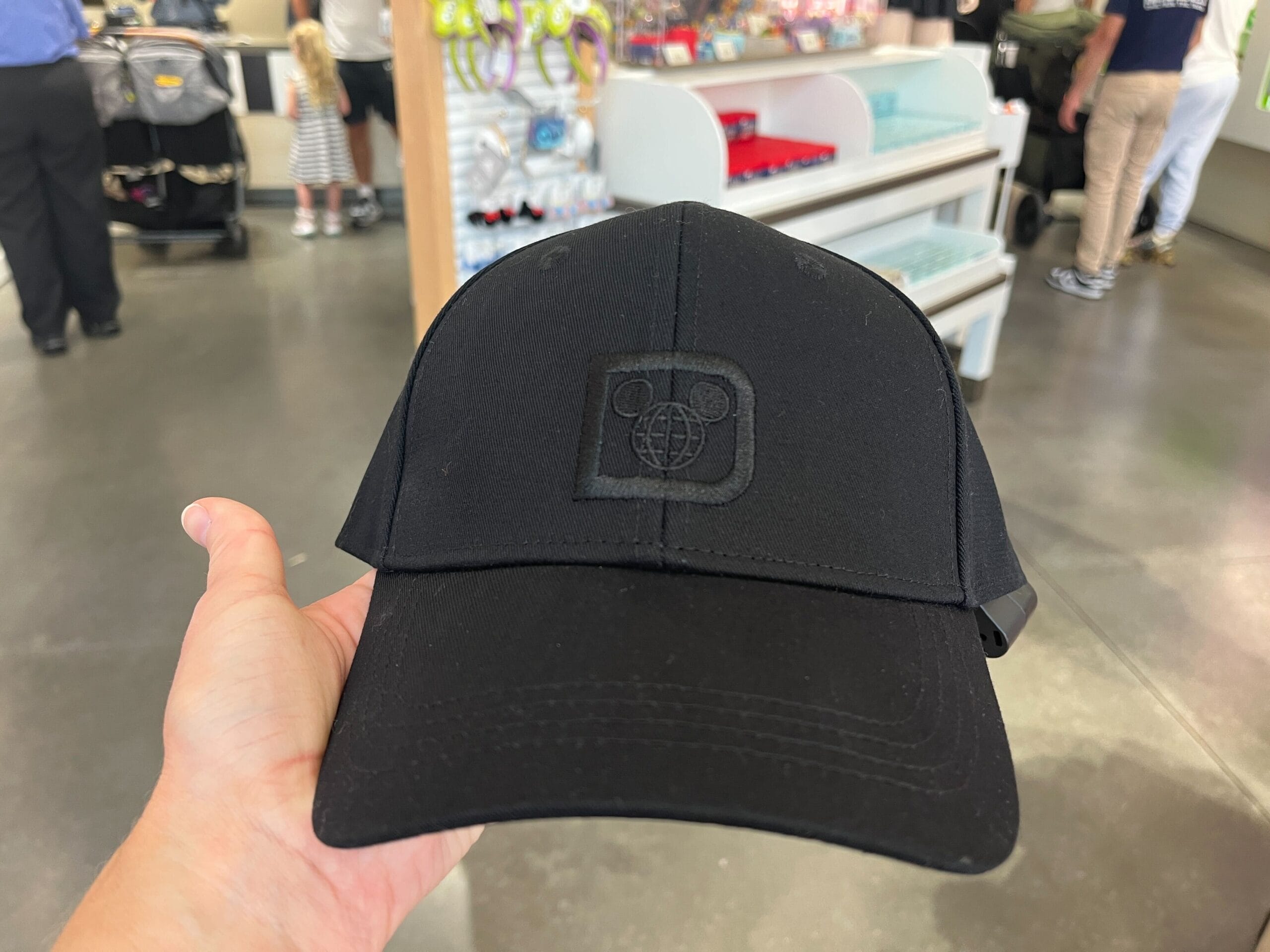 The hat, like the headband, is sold separately from the plush. At least for now, the only hat option available is a simple black ball cap with the retro Walt Disney World logo embroidered on the front.