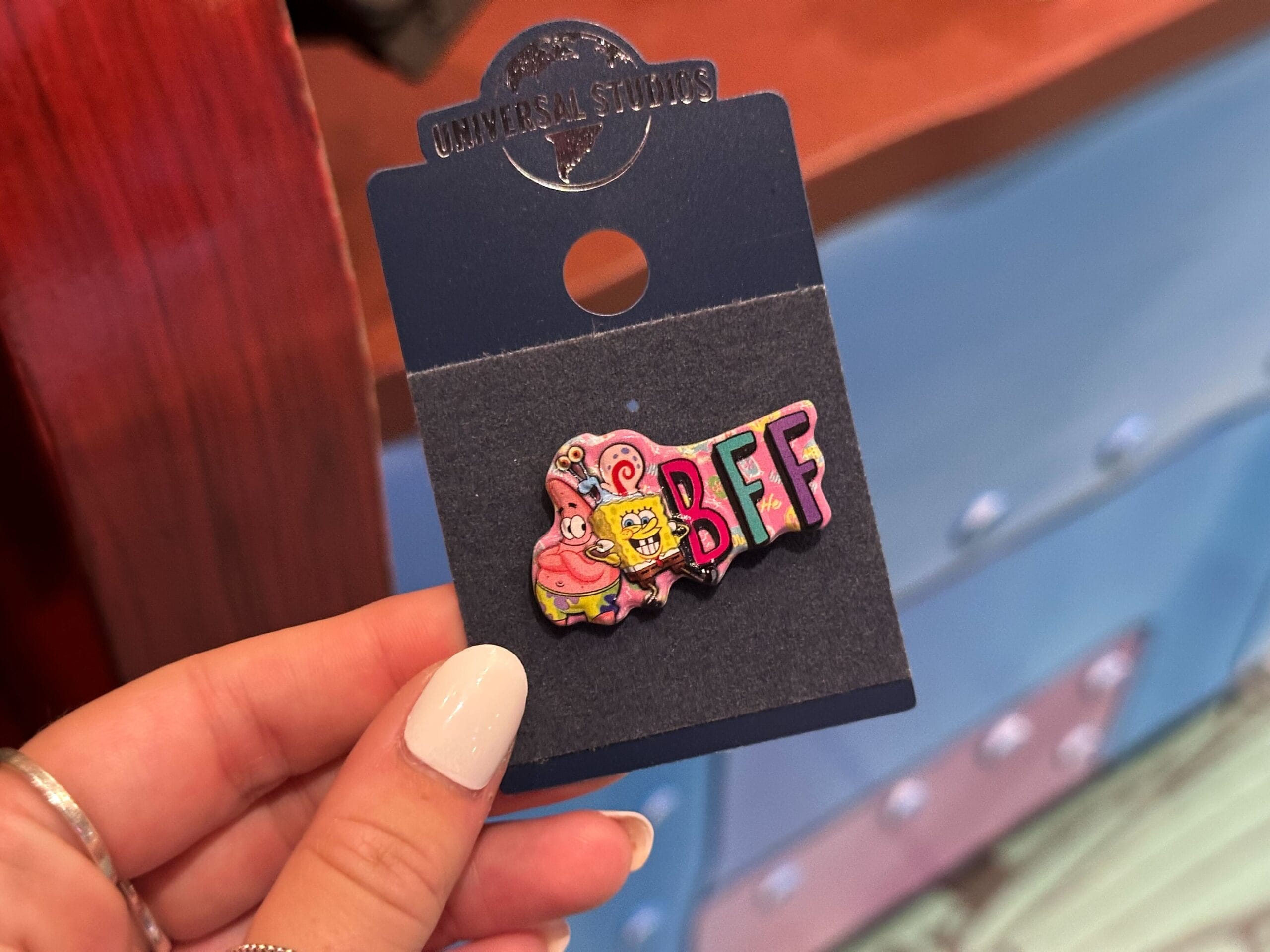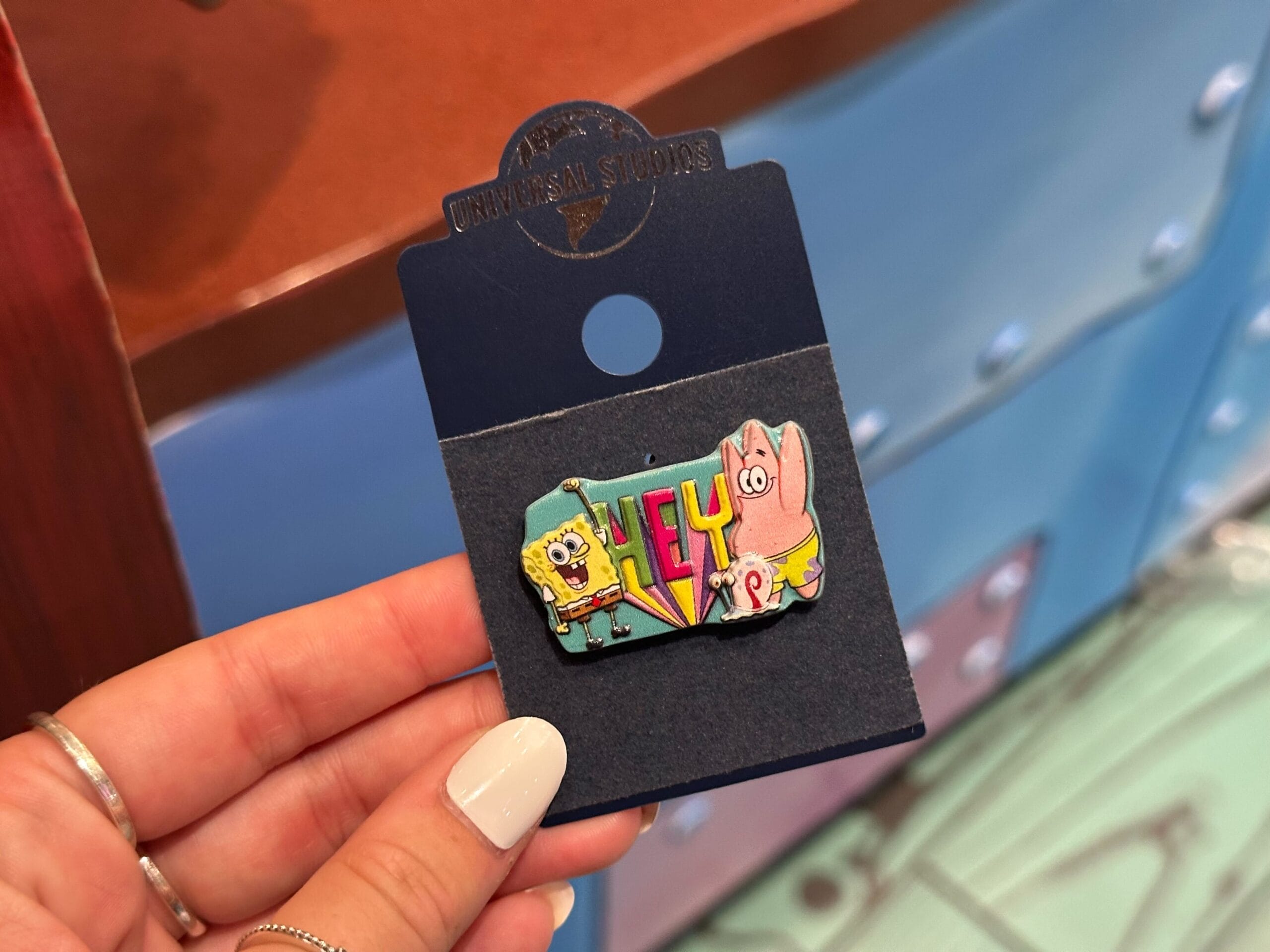 The pins were in SpongeBob StorePants, next to DreamWorks Land in Universal Studios Florida. The magnets were in Islands of Adventure Trading Company.
