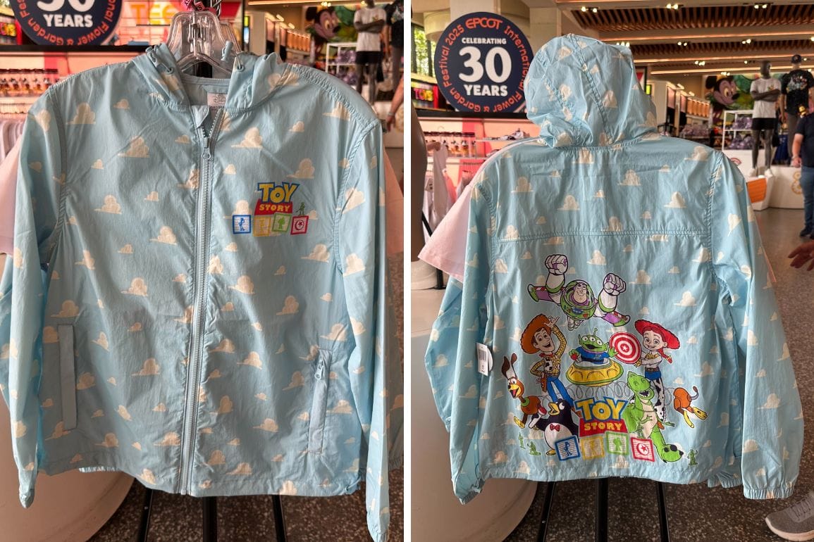 Both full-zip jackets are hooded with zippered pockets and can be found at Creations Shop in EPCOT. The “Toy Story” jacket is also available at Beverly Hills Boutique in Disney’s Hollywood Studios.