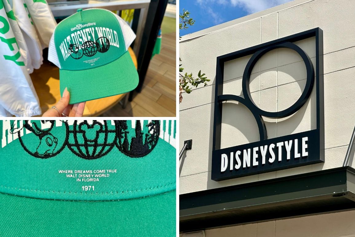 Green Disney World hat with retro logo and "Where Dreams Come True" text, available at the DisneyStyle store in Disney Springs. This new merchandise proudly highlights the year 1971.