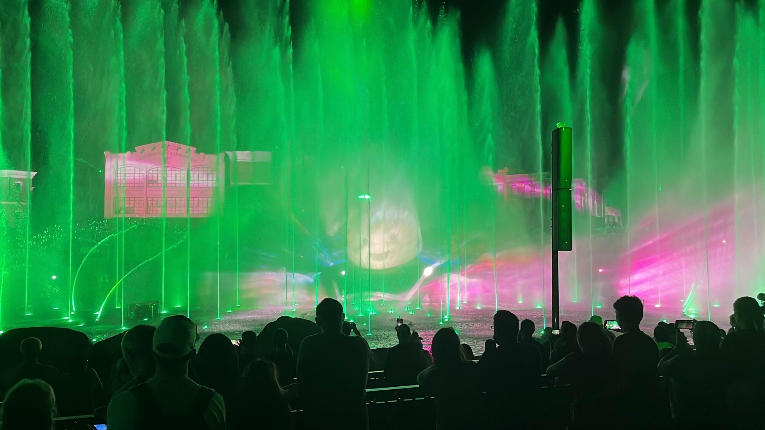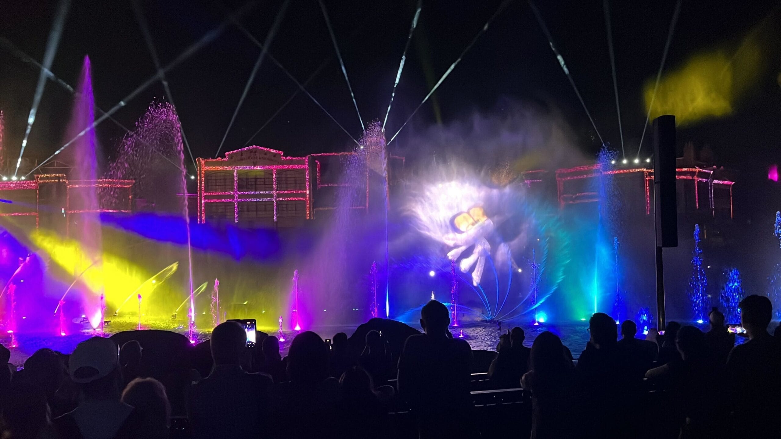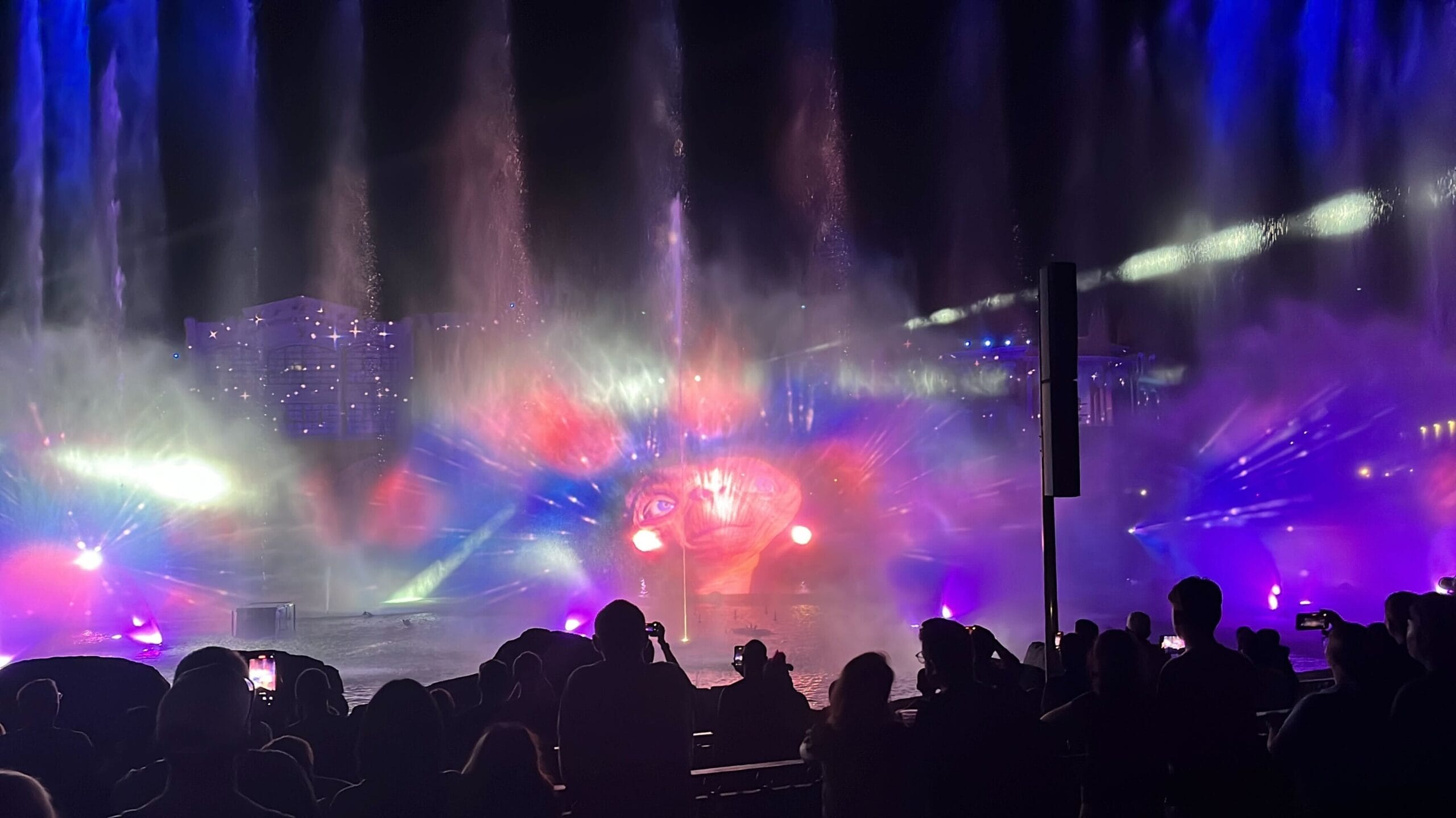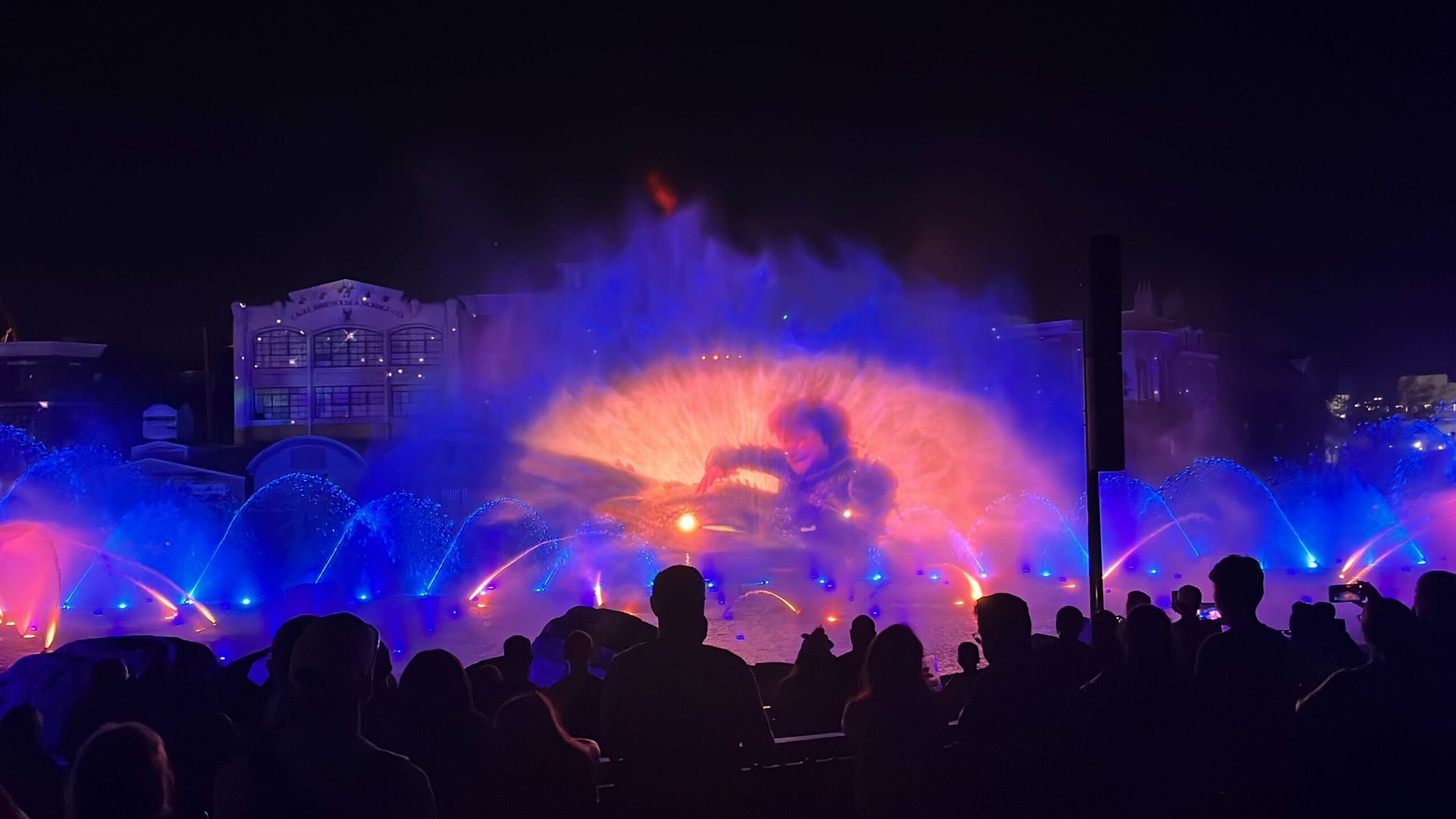 The show debuted in 2024, celebrating the soundtracks and scores of Universal’s many films and franchises. It uses the water screens and fountains of the central lagoon alongside lasers and projections, but the show’s original draw were the synchronized drones that formed shapes in the sky to accompany the rest of the effects.