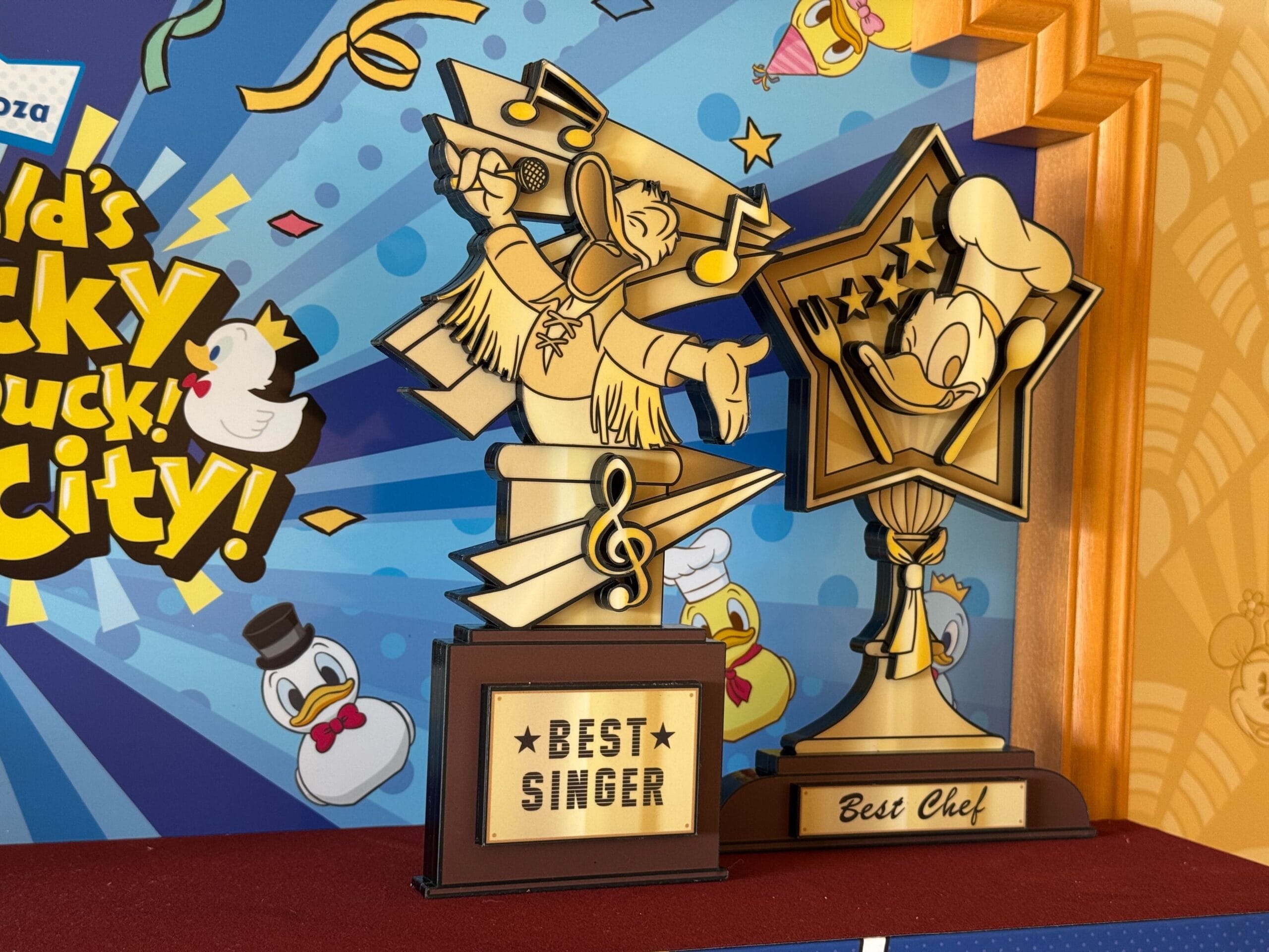 The other two trophies dub Donald the Best Singer and Best Chef. The trophy designs and bunting are from last year’s version of the celebration.