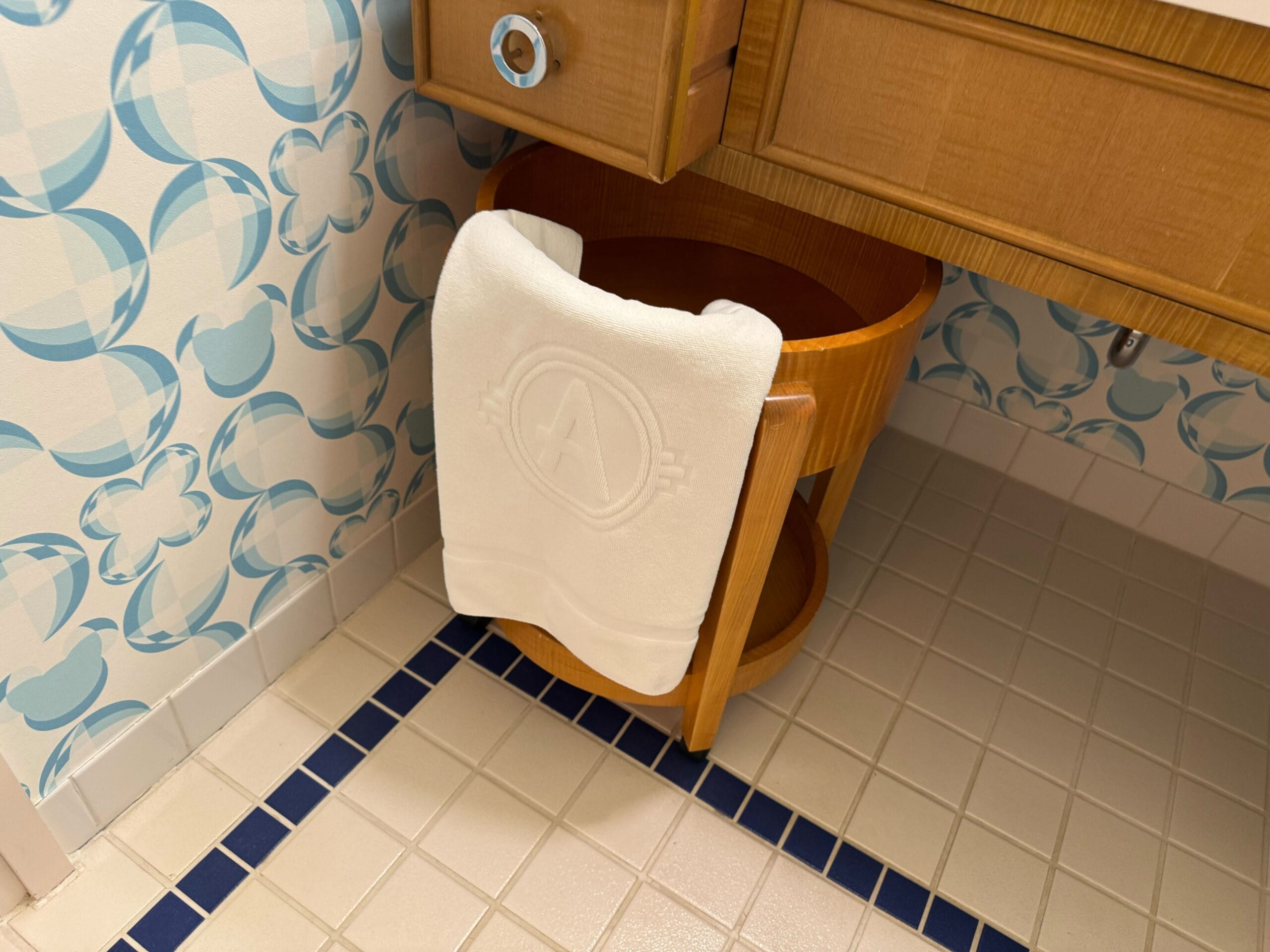 Tokyo Disney Resort hotel also have this rolling cart for extra storage. Disney Ambassador Hotel towels feature the hotel’s “A” logo.