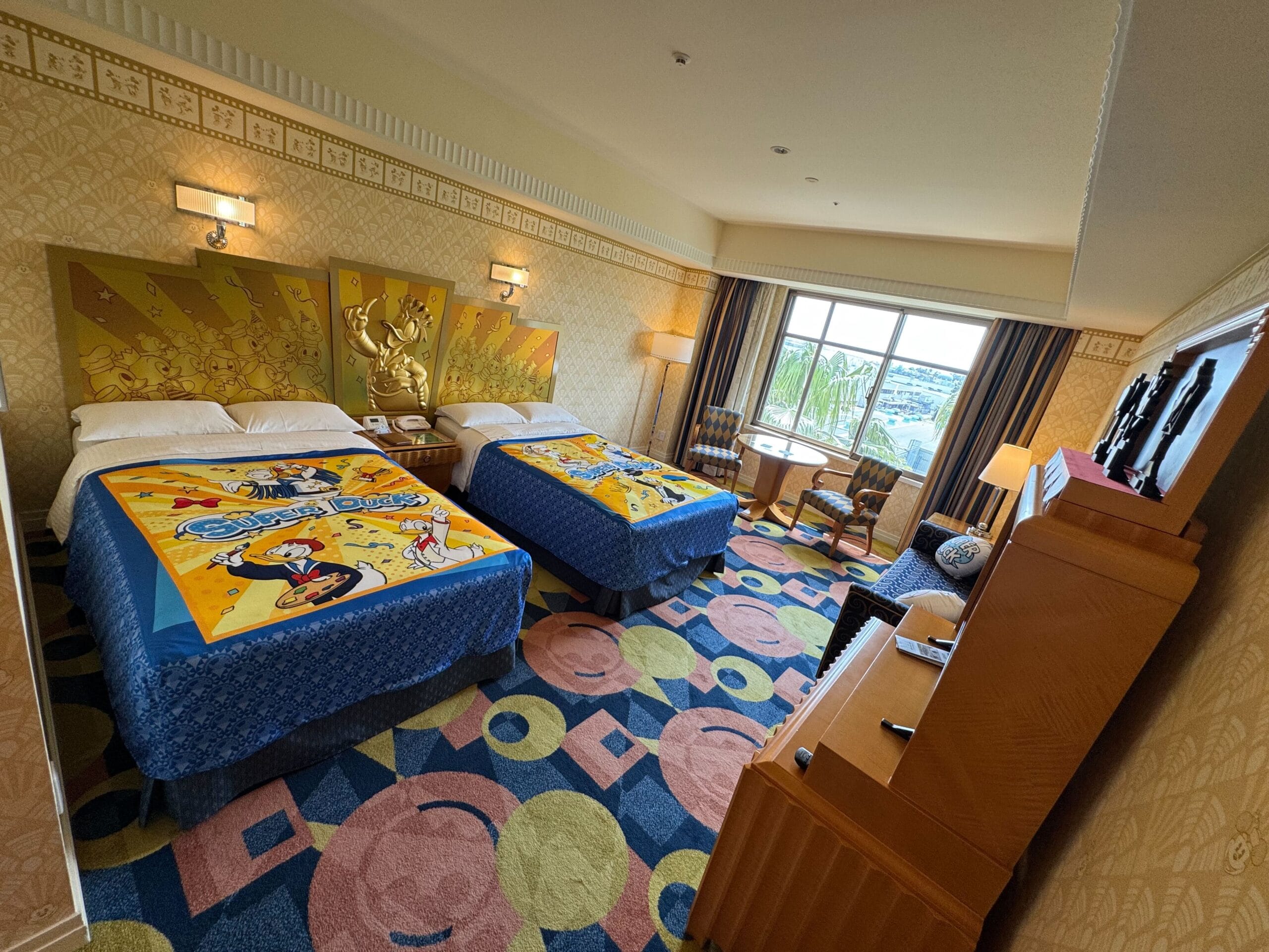 Though there are special Donald Duck decorations, for the most part this is a standard hotel room. All the furnishings, carpet, and wallpaper are permanent.