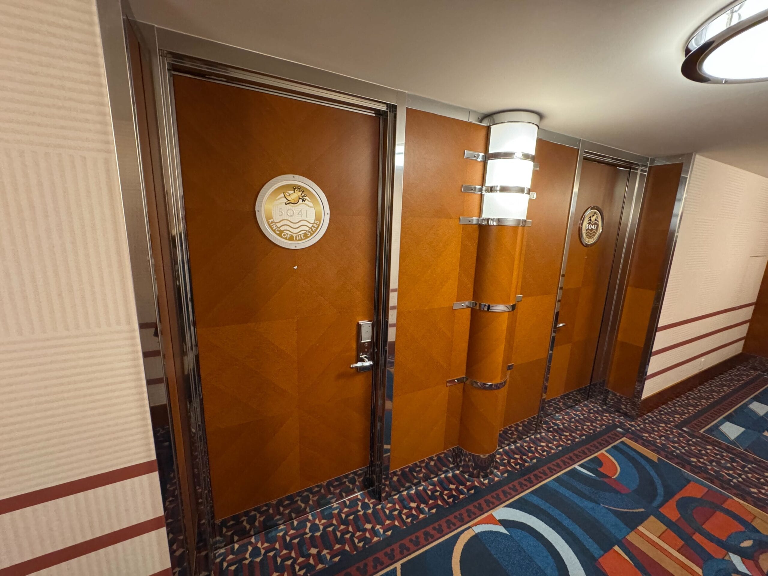 The decorated rooms are marked with porthole-shaped plaques on their doors.