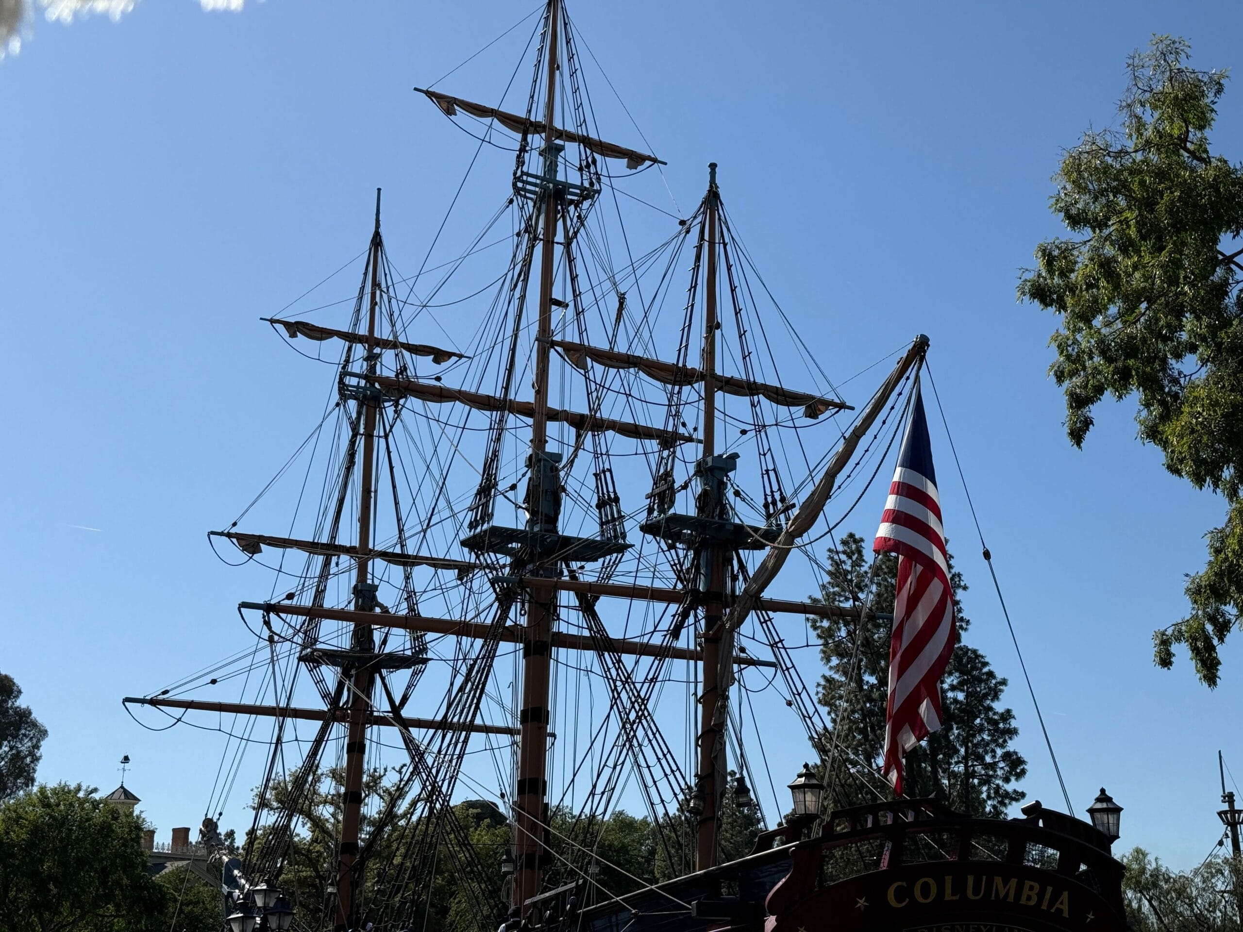 The Sailing Ship Columbia is an attraction in Frontierland where guests get to board a fully rigged sailing vessel and take a short tour of Disneyland Park. The ship follows the same path as the Mark Twain Riverboat and Davy Crockett’s Explorer Canoes, going around Tom Sawyer Island and past Bayou Country. The ship is named for the original Columbia, which was the first American ship to circumnavigate the globe.
