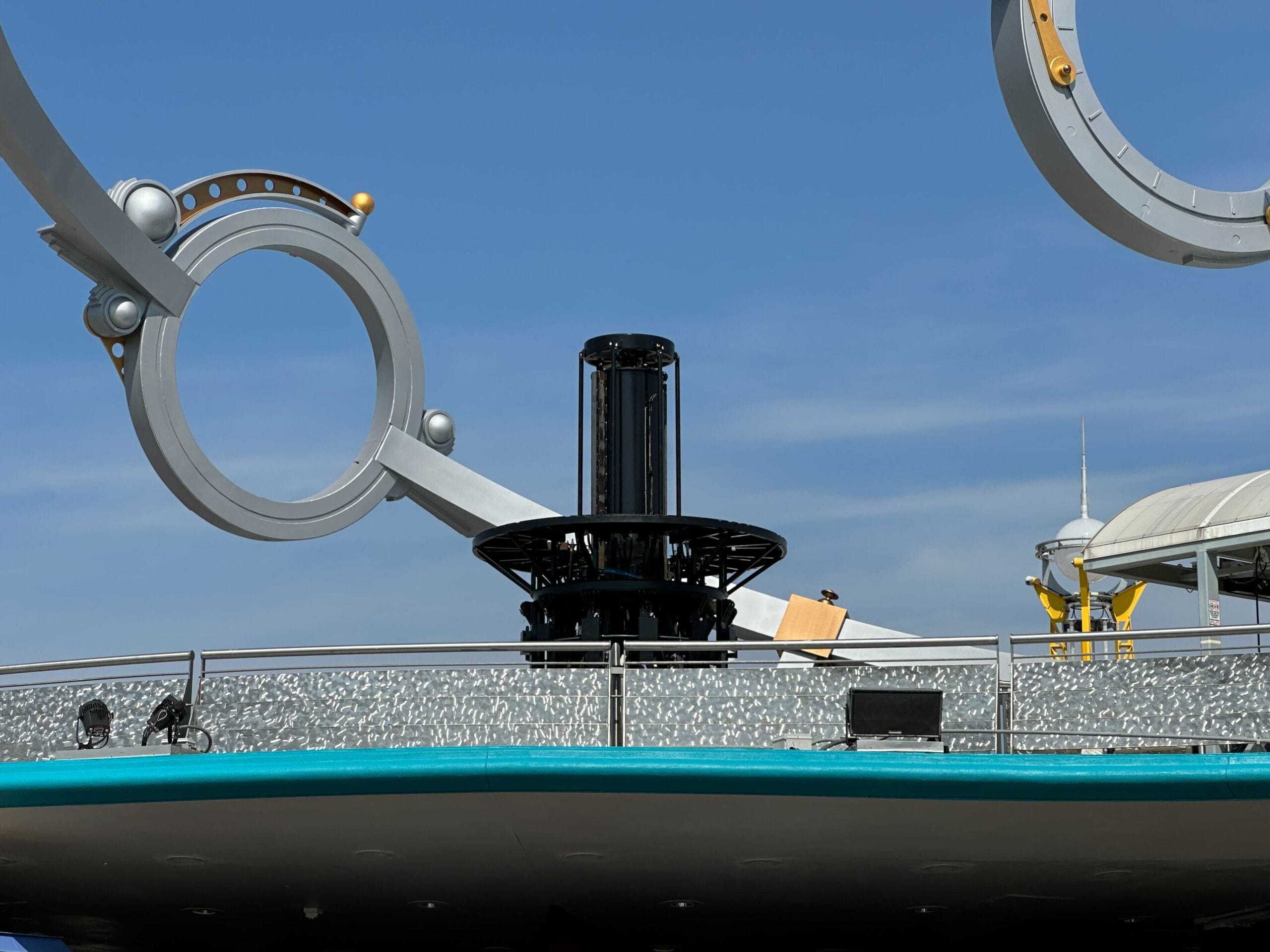 The column isn’t visible from the ground, but we could see it while riding on the PeopleMover. The Astro Orbiter closed for refurbishment in January. The attraction was quickly dismantled and removed from the park to be refurbished off-site.
