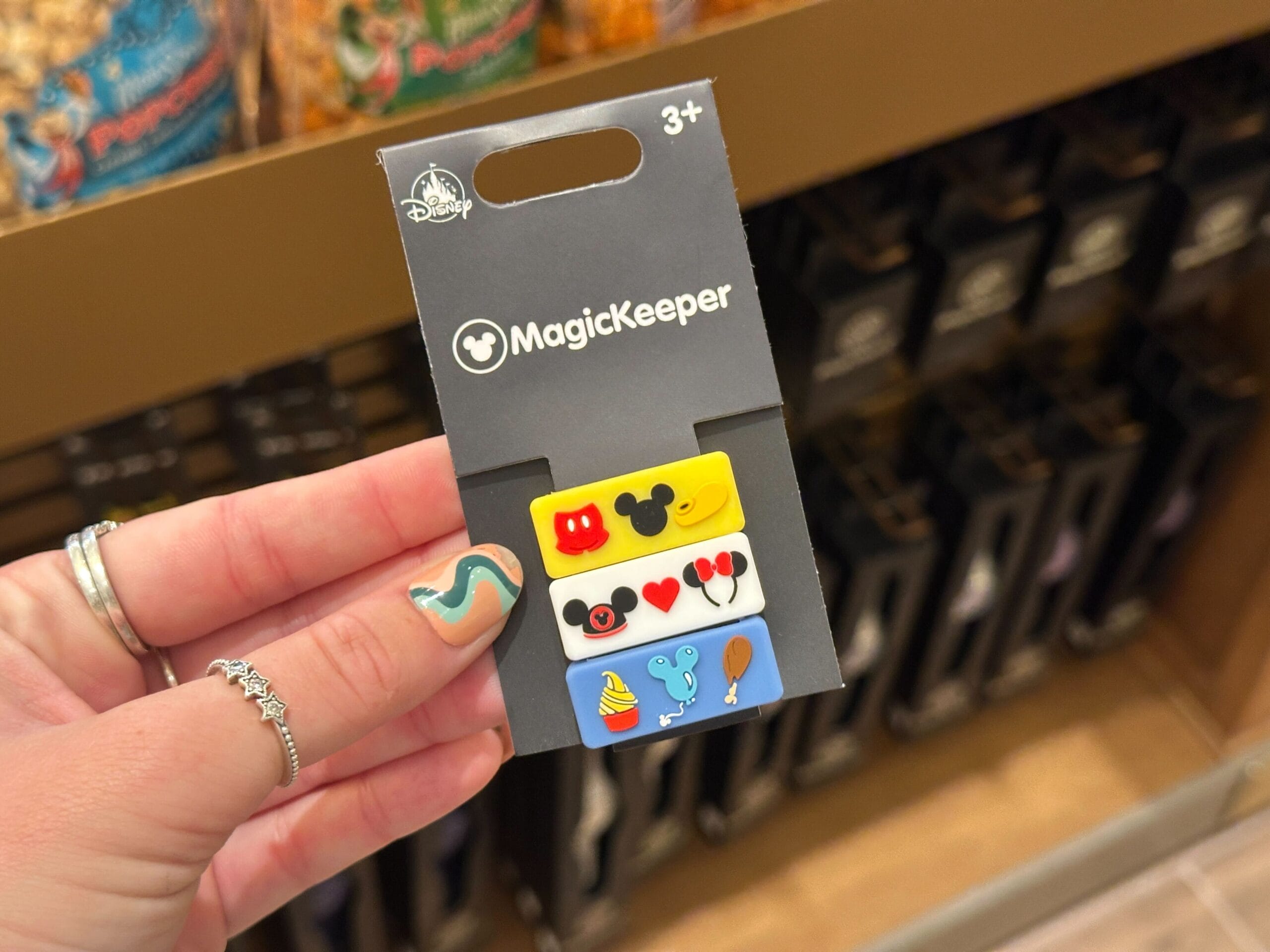 MagicKeeper sliders for MagicBand+ wristbands are now available for purchase in Walt Disney World. We found them at the Emporium in Magic Kingdom.