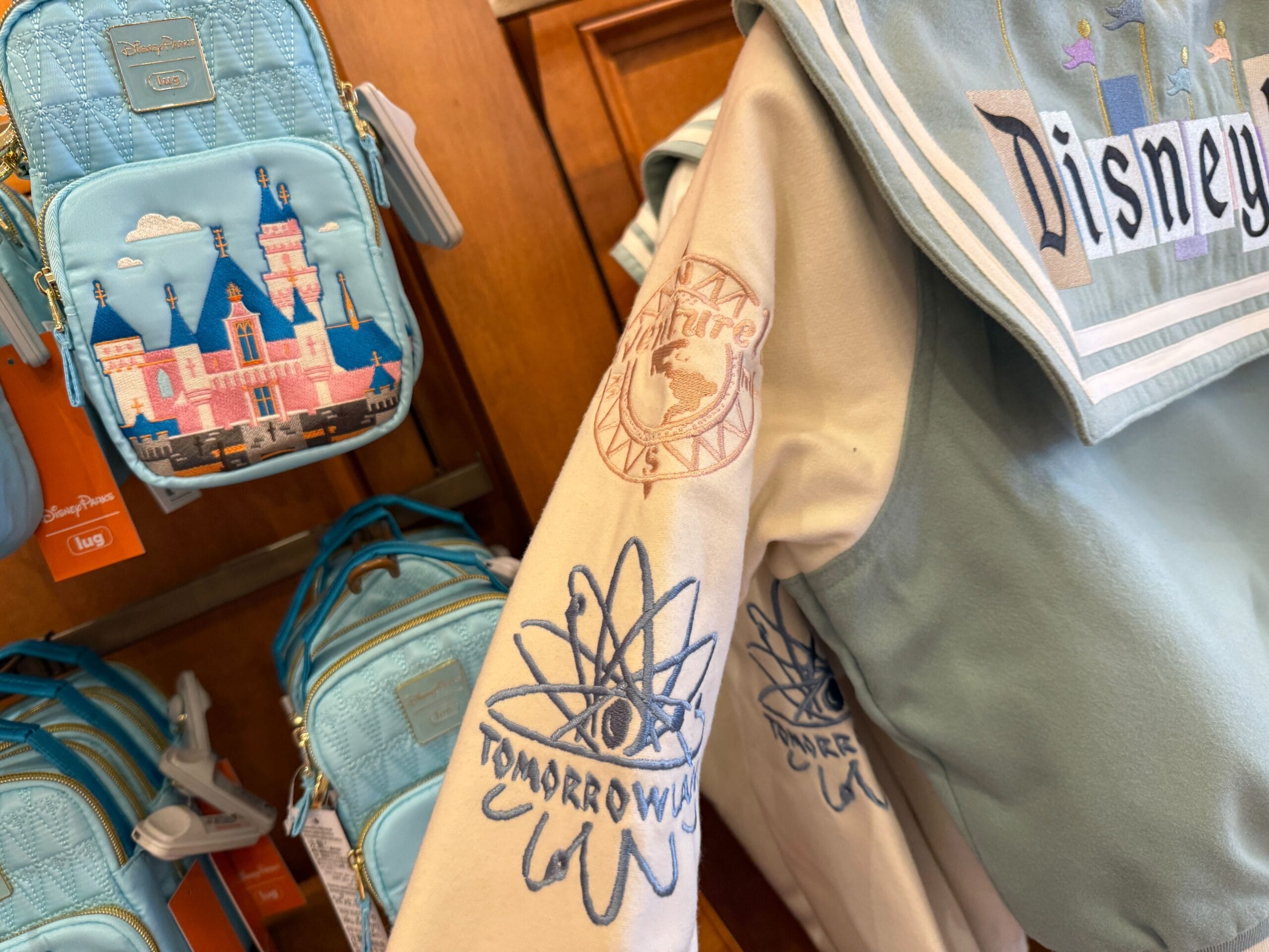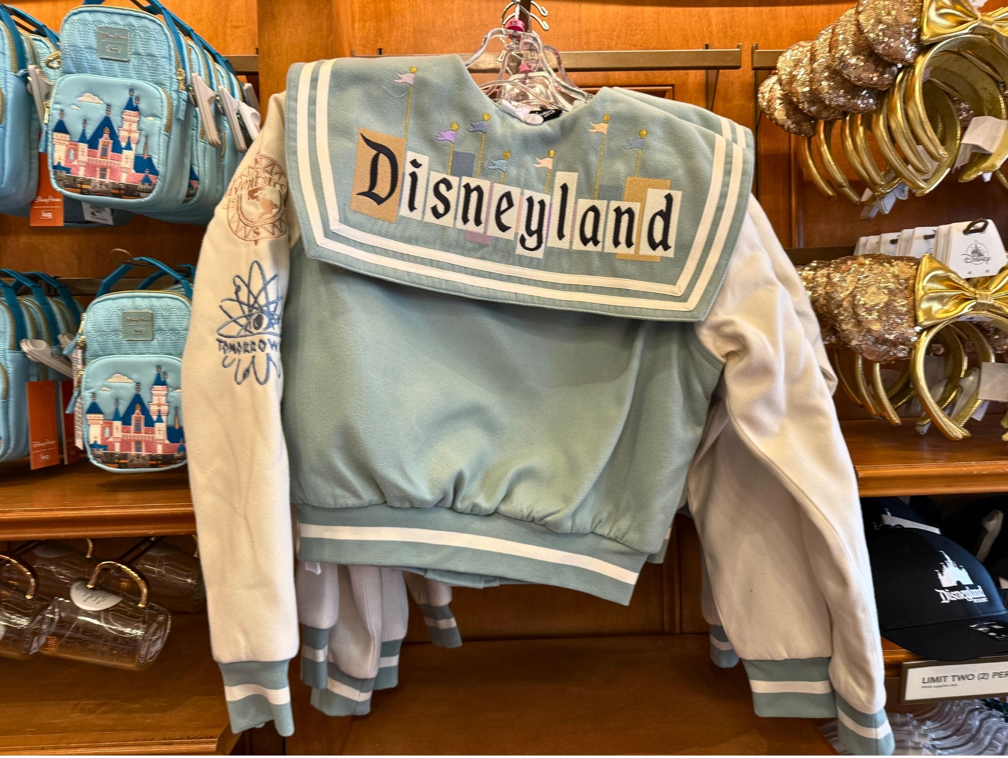 A new collegiate-style jacket with retro Disneyland logos is available at Disneyland Resort. It was released at Fortuosity Shop in Disneyland Park.