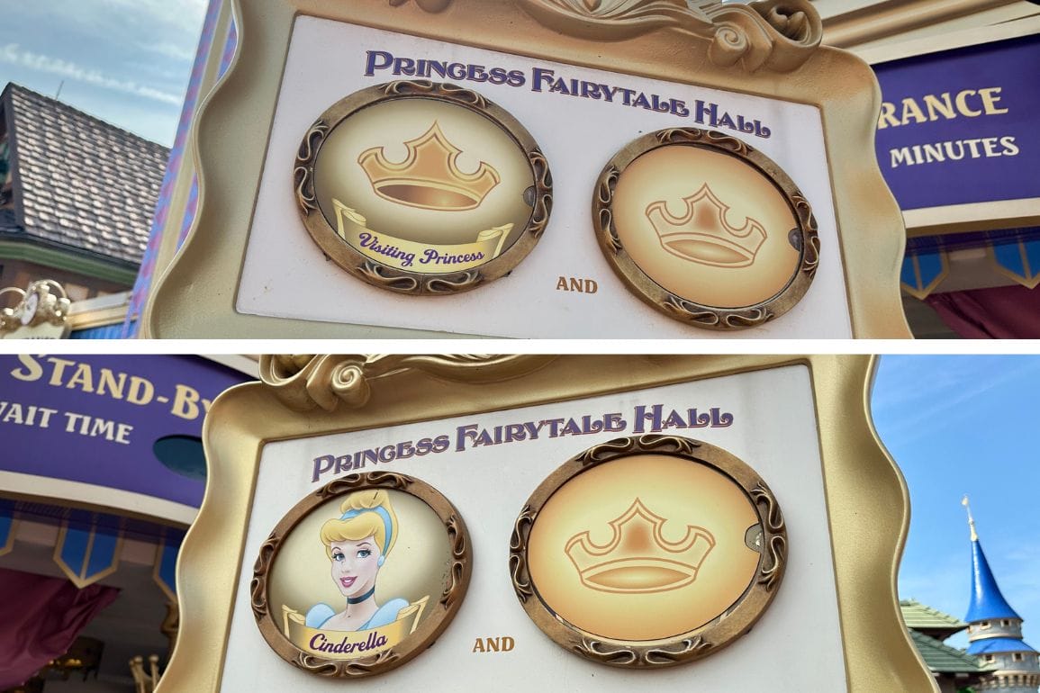 Speaking of something needing to be done. Many moons ago you could meet four guaranteed princesses in Fairytale Hall. Now, you are lucky to have Princess Tiana and Princess Cinderella there with a mystery princess. Today, Tiana must have been busy trying to get her ride to open this morning, so the only guaranteed princess in the hall today was Cinderella.