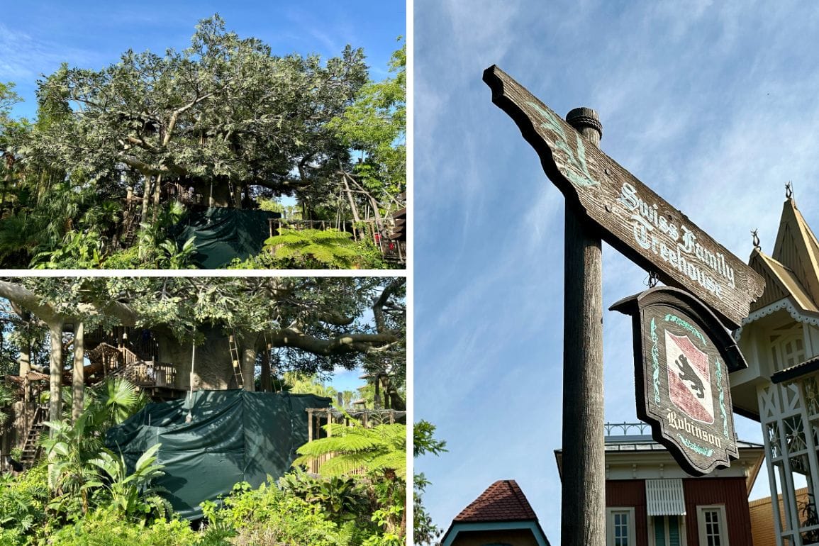 Good news from the Swiss Family Treehouse. Half of the scaffolding and scrims have been removed from the treehouse. Hopefully, this is a good sign that even more scrims and scaffolding are coming down soon.