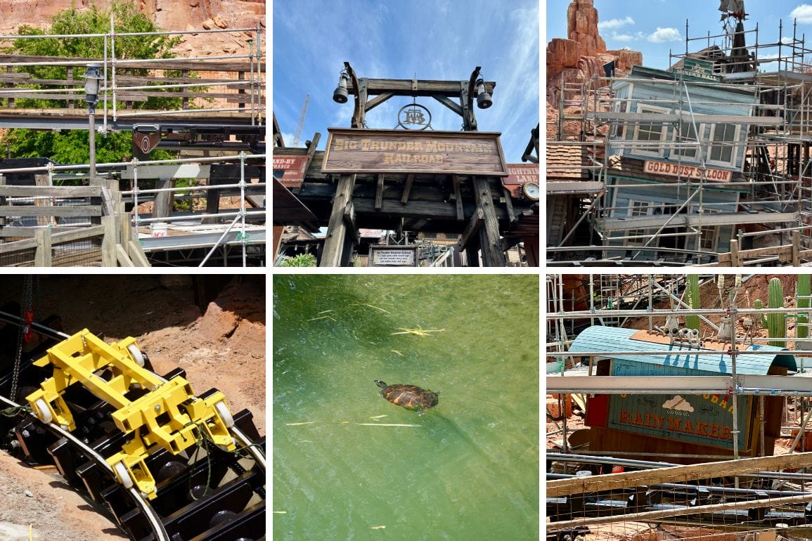 Before I left Magic Kingdom, I wanted to check on the progress at Big Thunder Mountain Railroad. I started with a ride on the Liberty Belle riverboat and saw a small yellow vehicle on the track, likely for testing as they continue to build the track. There is even a new track piece that you can see the end of. I am fairly certain this is the last of the track left, but who can say with certainty when there’s so much not visible? I even saw a small turtle passing the boat.
