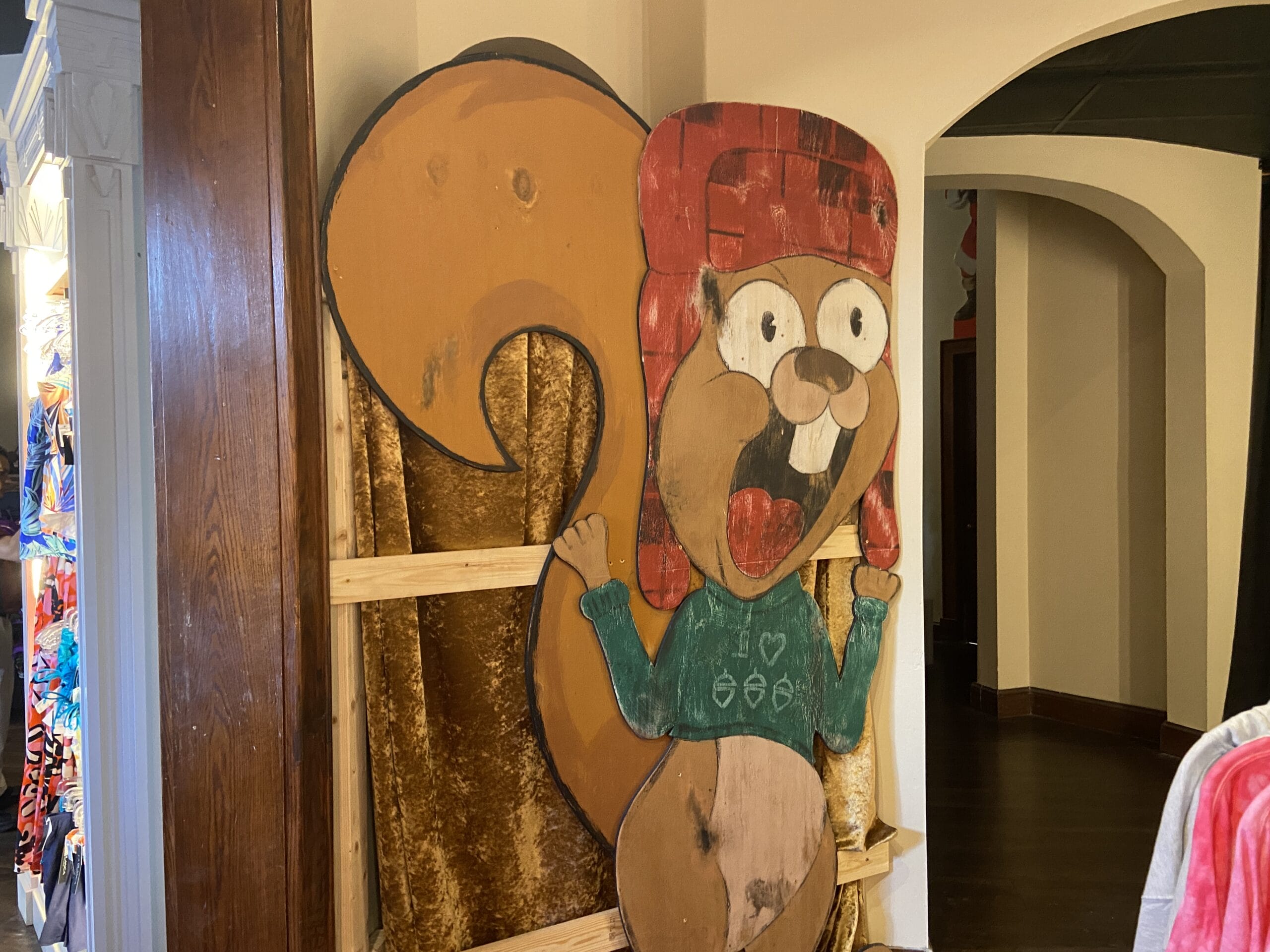 There’s an Earl the Squirrel cutout on the wall of the next room. Unfortunately, these props are not available for purchase.